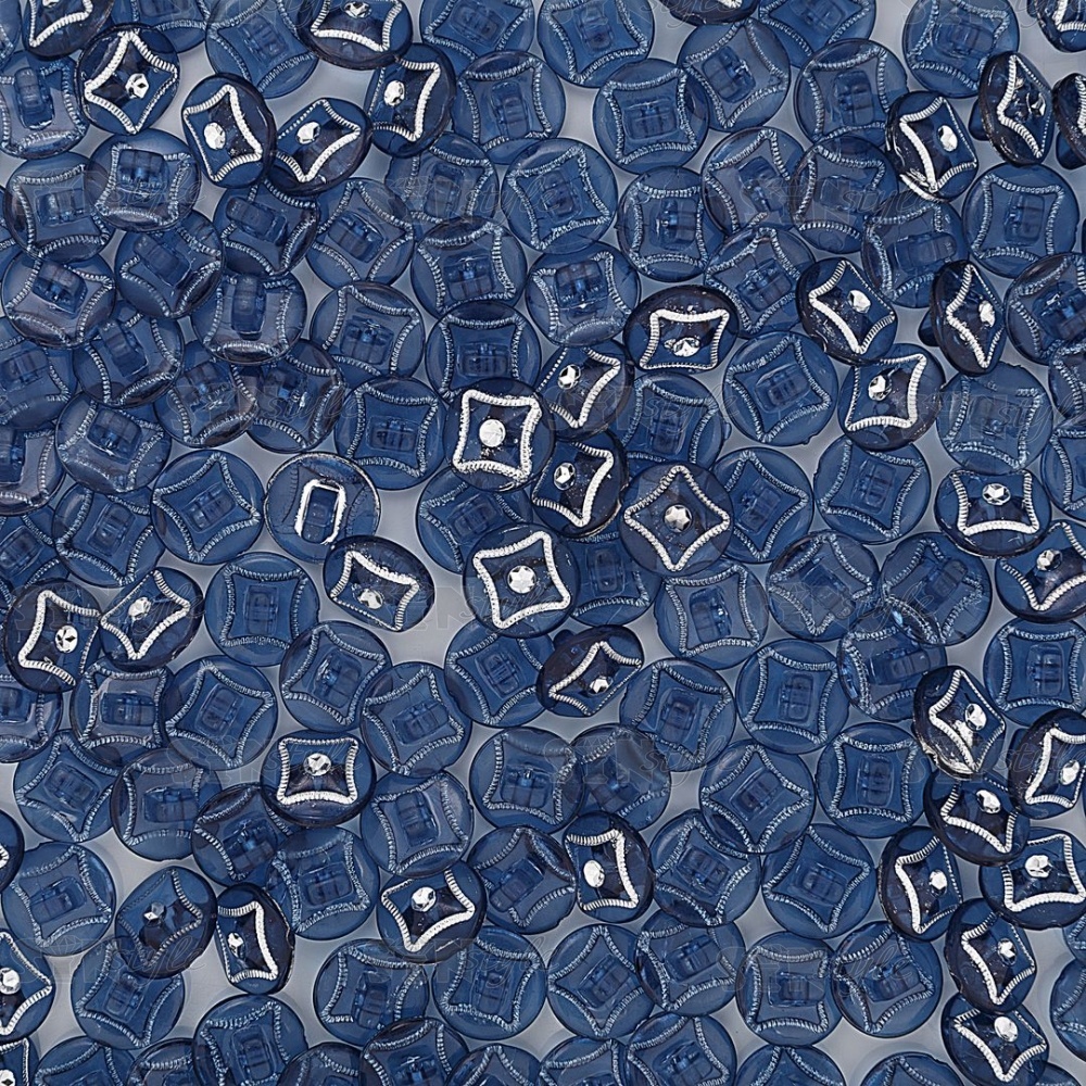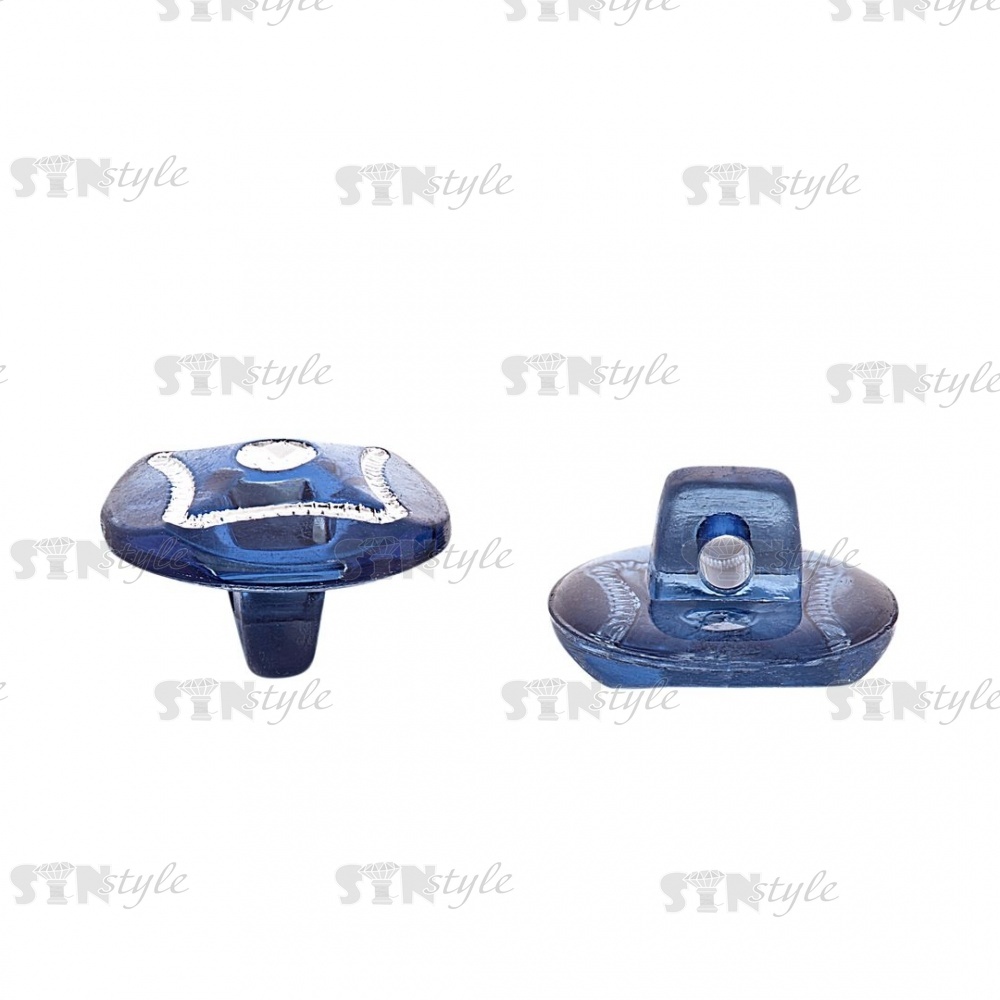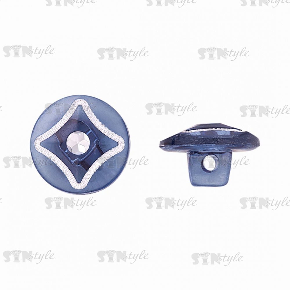 Пуговица пластиковая на ножке, круглая, темно-синяя прозрачная с белой стразой в центре, 20L