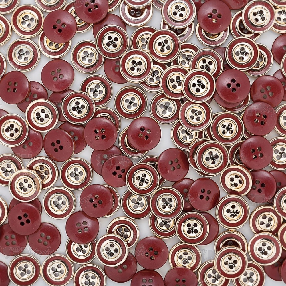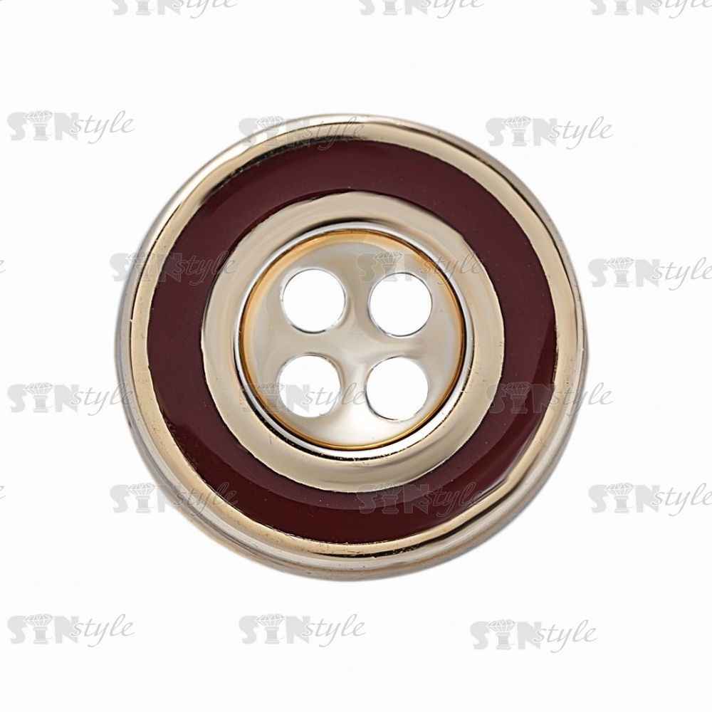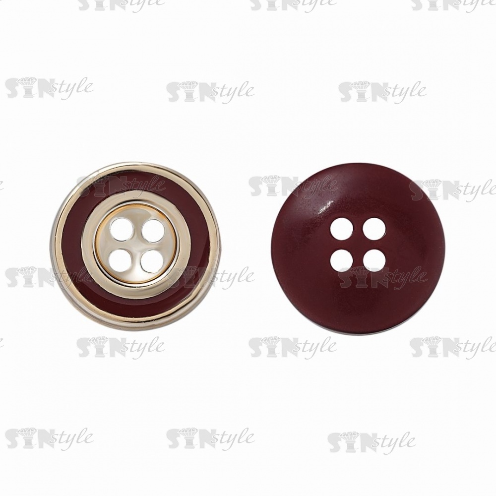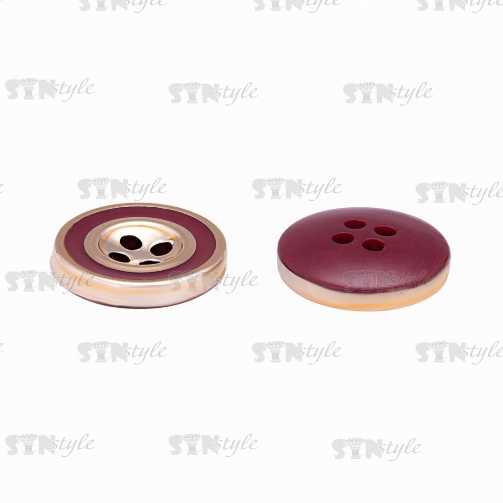 Пуговица пластиковая на четыре прокола, золотая/бордовая, 24L