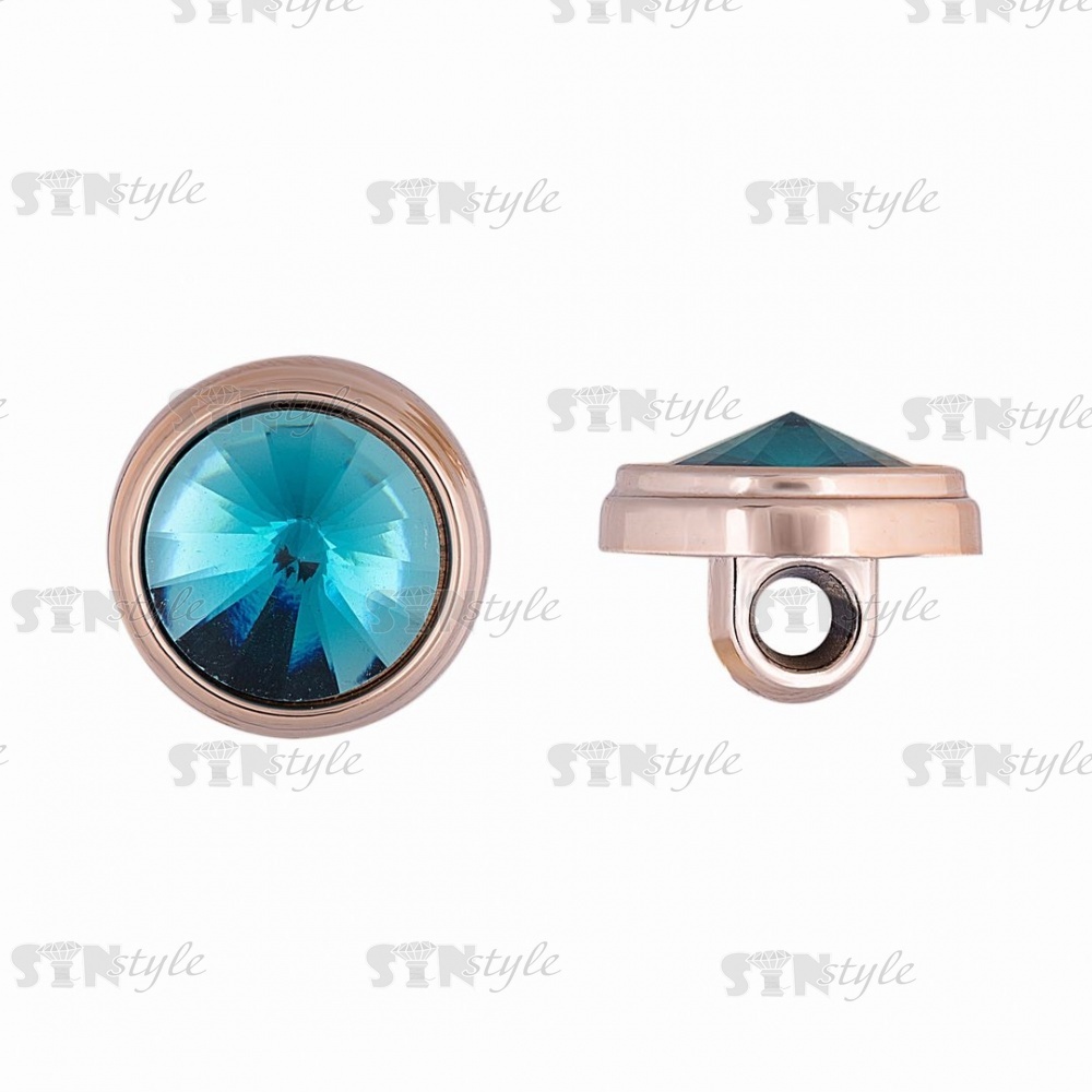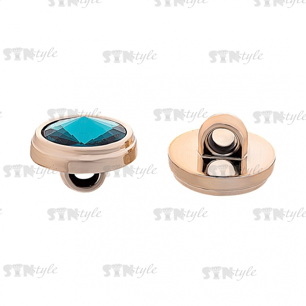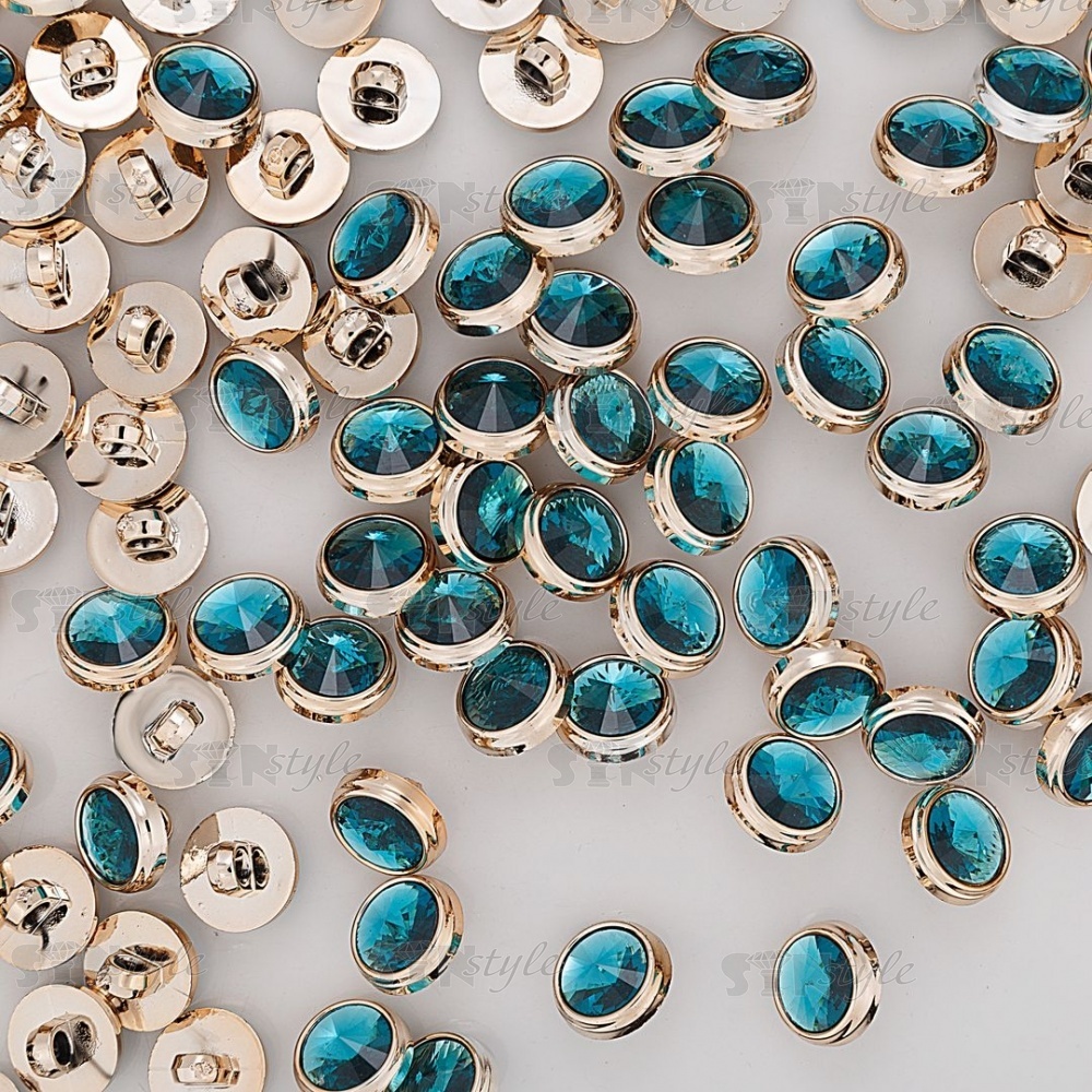 Пуговица пластиковая на ножке, круглая, золотая основа с бирюзовым кристалом, 20L