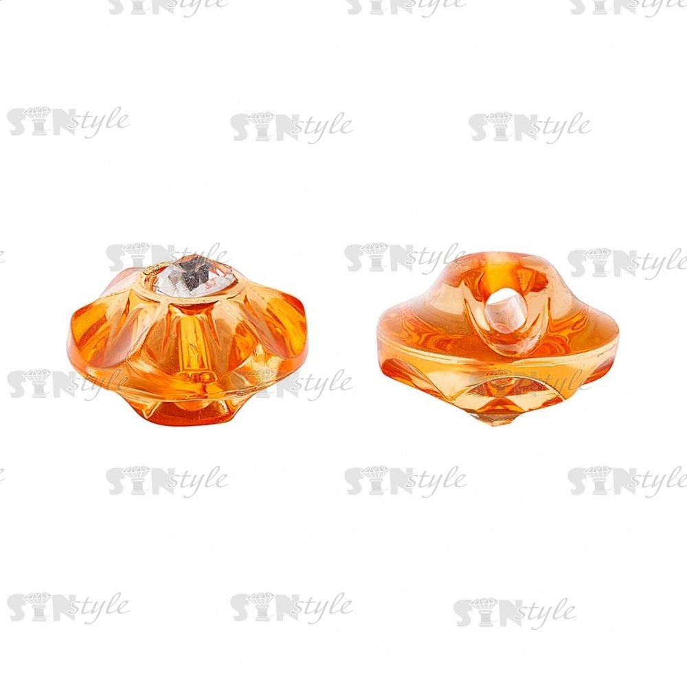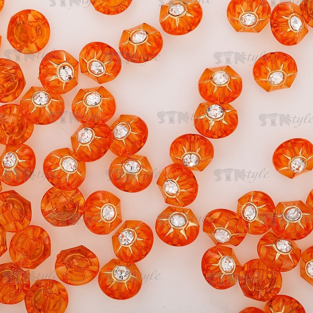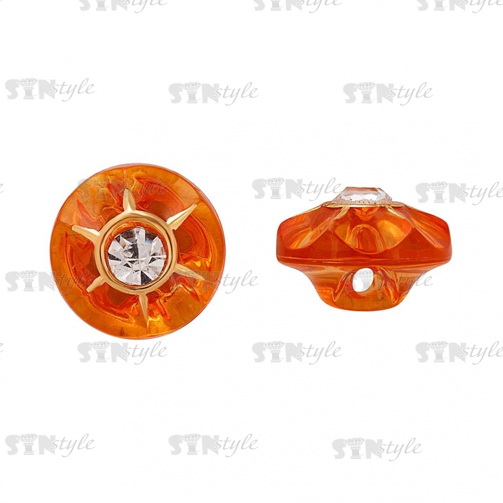 Пуговица пластиковая на ножке, круглая, оранжевая прозрачная с белой стразой в центре, 20L