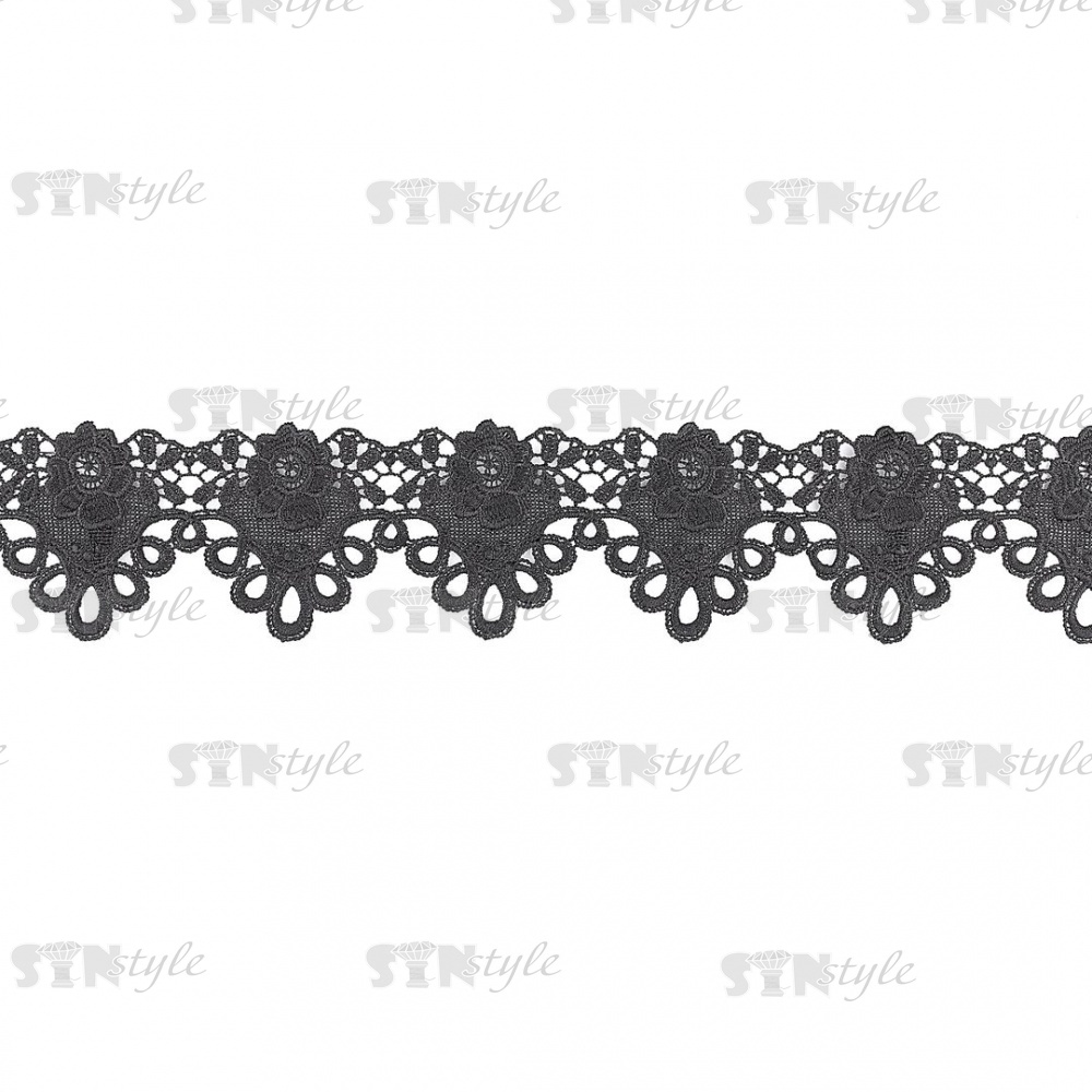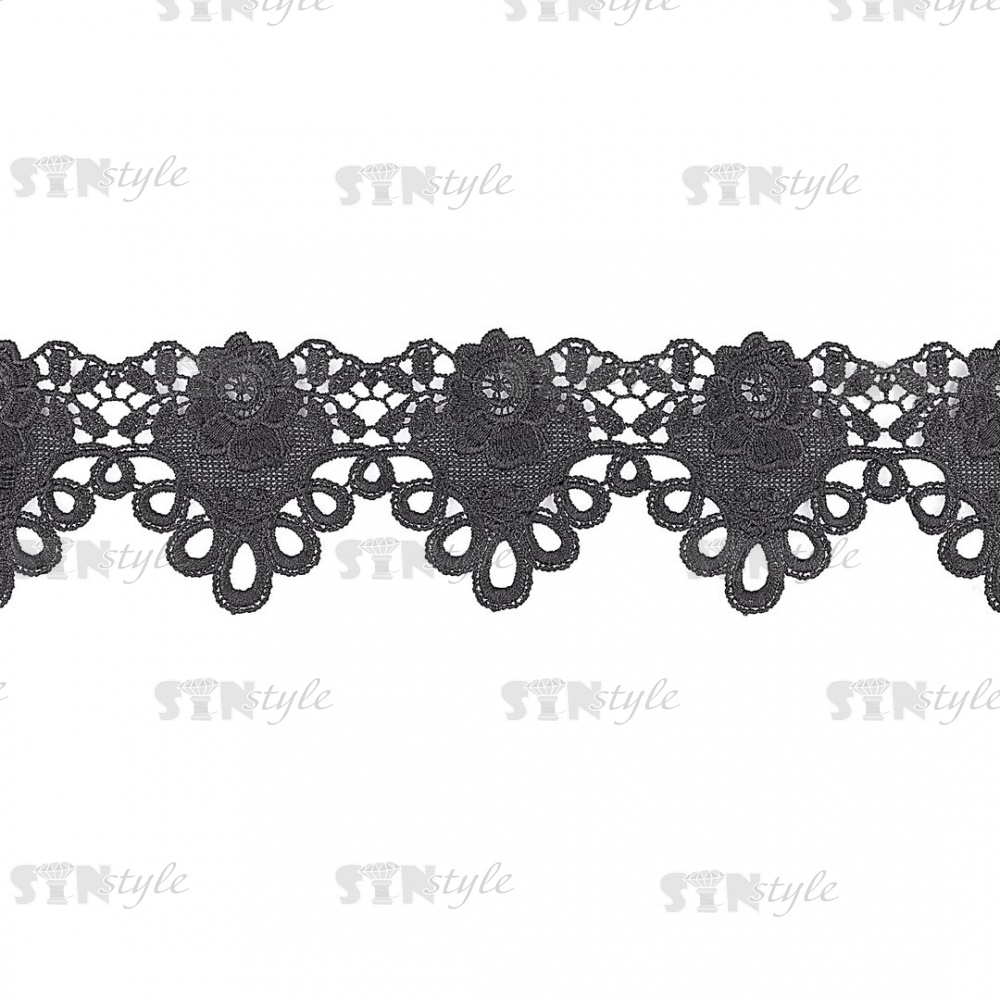 Кружево ажурное, нежная цветочная гирлянда с резным воздушным краем, ширина 65 мм, цвет черный, намотка 15 ярдов