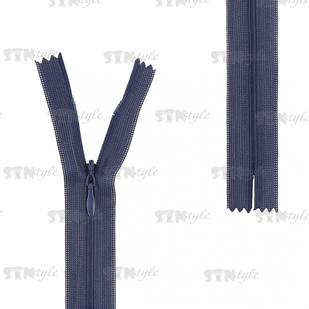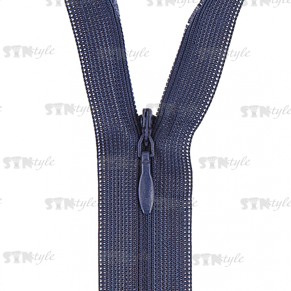 Молния спираль, тип 3, потайная, неразъемная, основа капрон, длина 50 см, цвет 226 (темно-синий), бегунок цвета основы