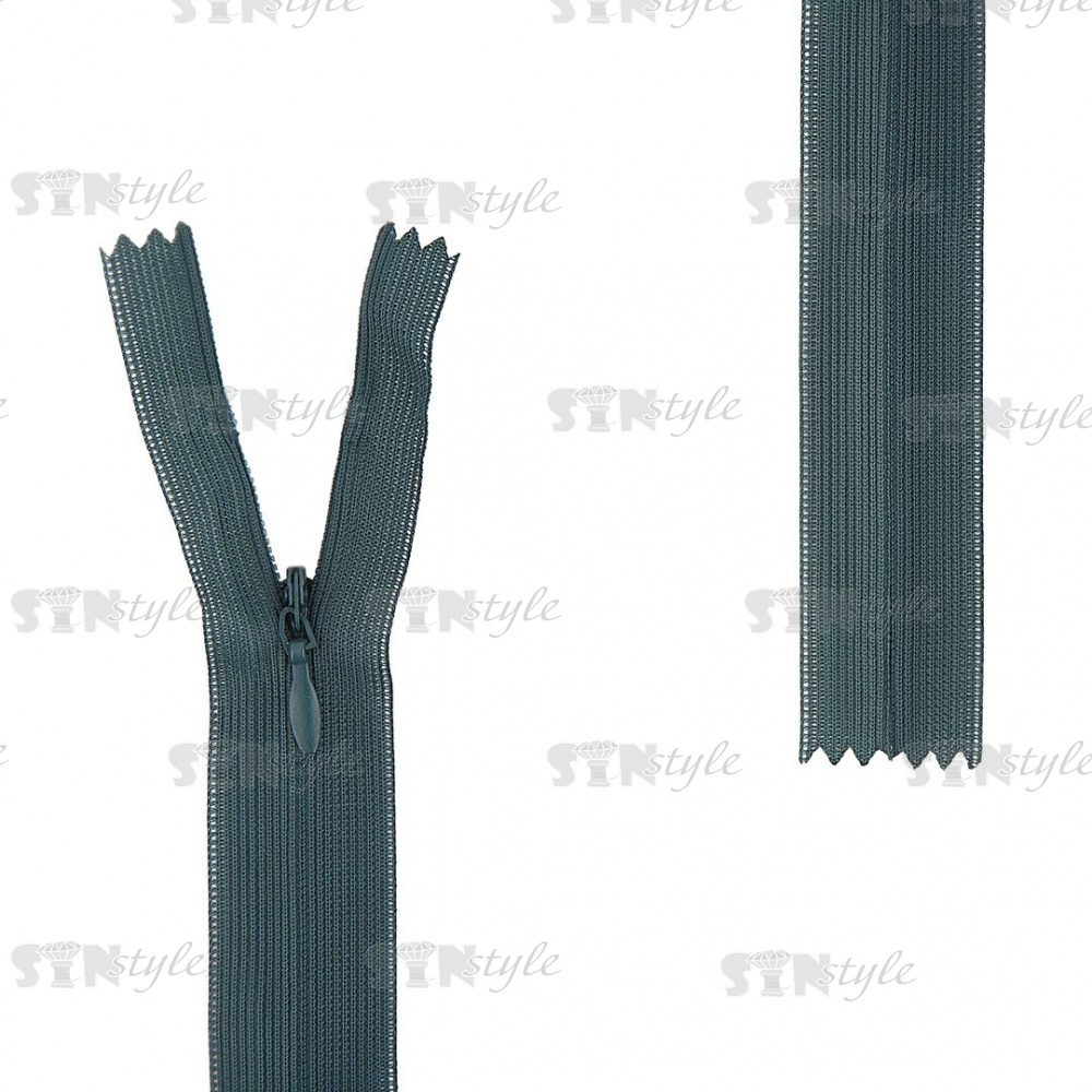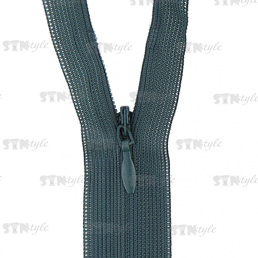 Молния спираль, тип 3, потайная, неразъемная, основа капрон, длина 50 см, цвет 273 (темно-зеленый), бегунок цвета основы