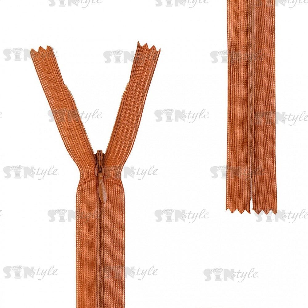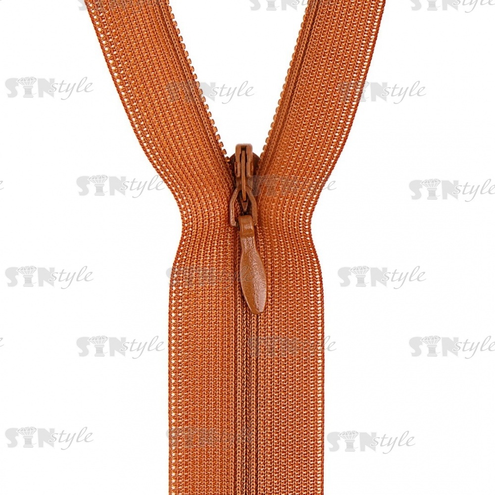 Молния спираль, тип 3, потайная, неразъемная, основа капрон, длина 50 см, цвет 280 (желто-коричневый), бегунок цвета основы
