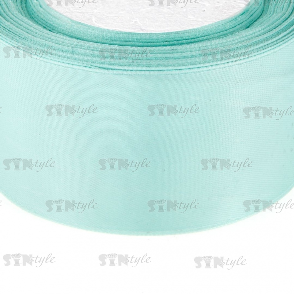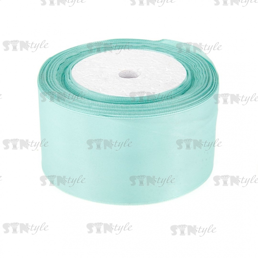 Декоративная лента атласная, 55 мм, намотка 25 ярдов, цвет светло-голубой (№141)