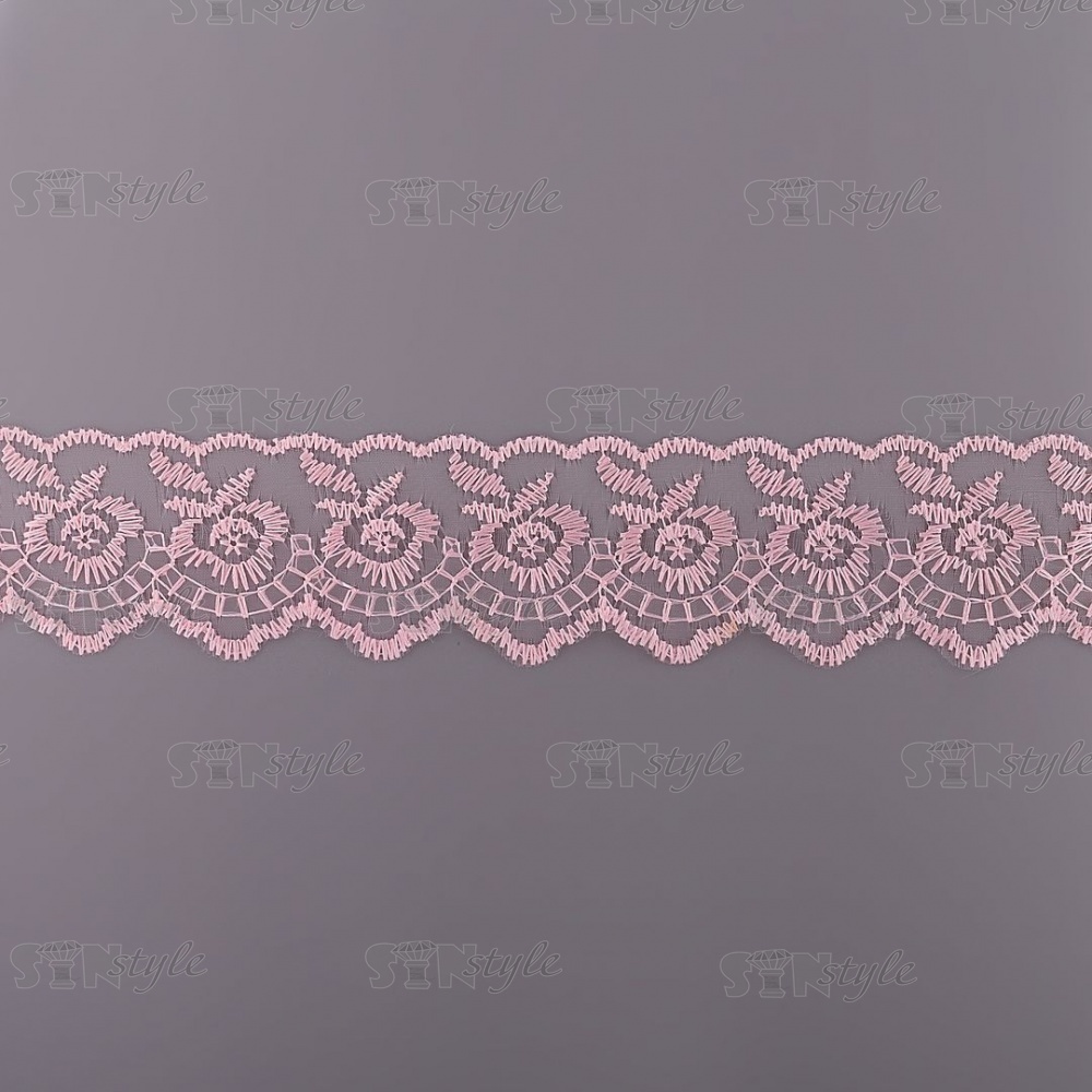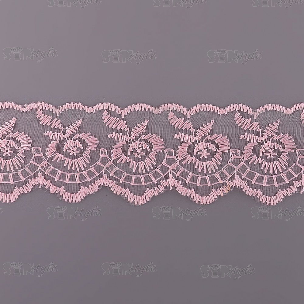 Кружево декоративное, нежная вышивка на тонкой капроновой основе, ширина 40 мм, цвет розовый (66), намотка 10 ярдов