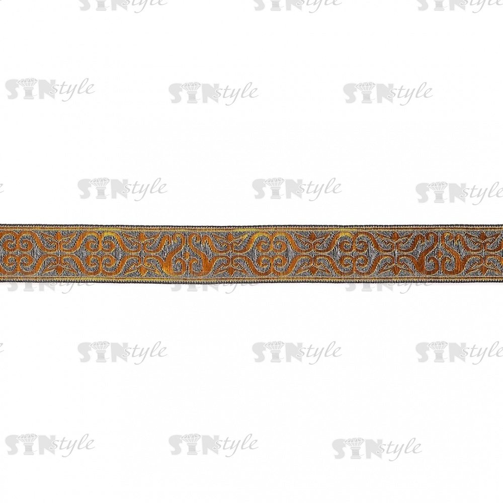 Жаккардовая лента, ширина 33 мм, намотка 10 м, цвет серебряный+золотой