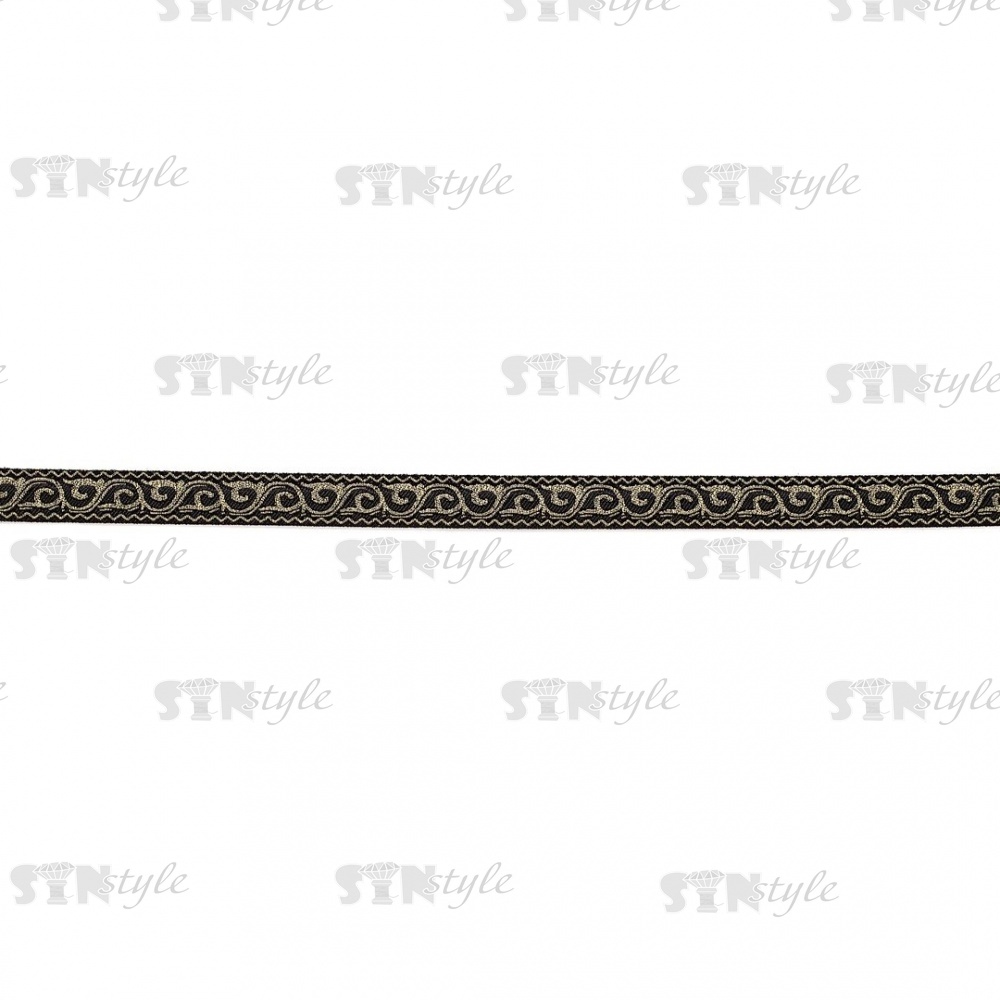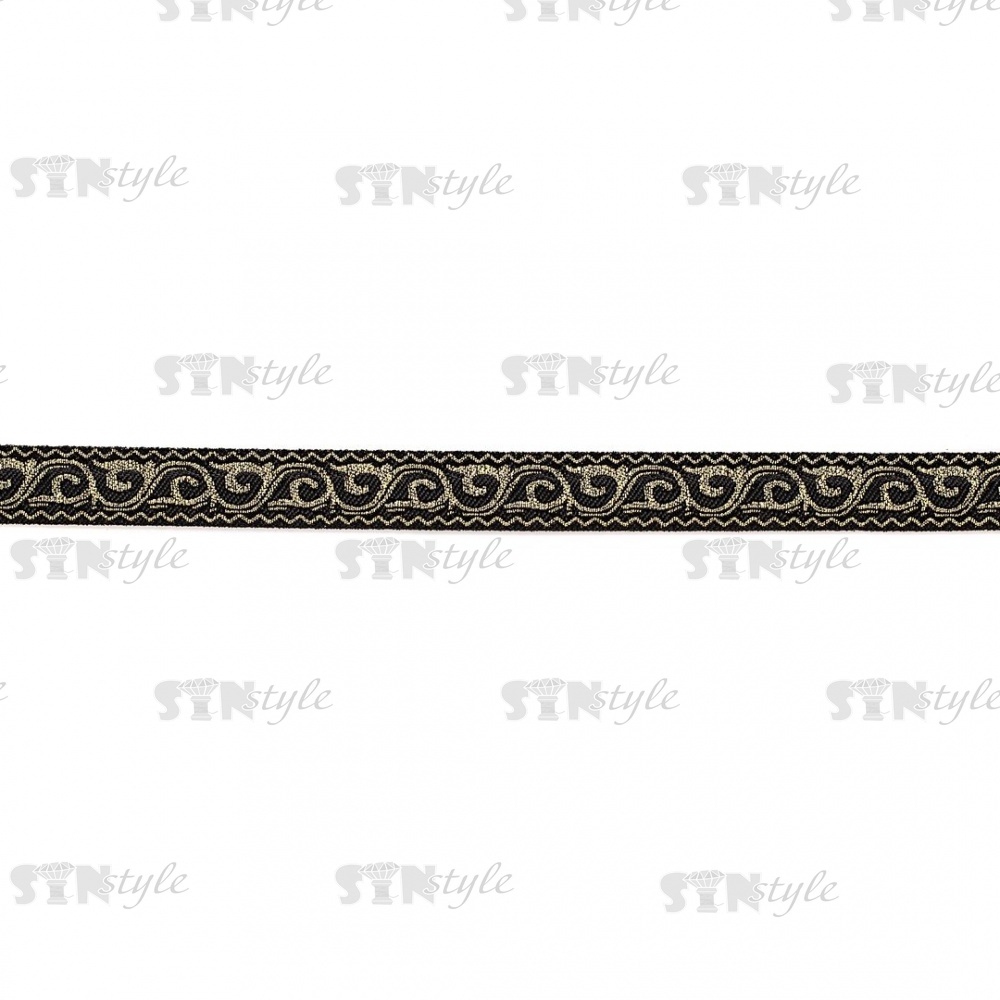 Жаккардовая лента, ширина 16 мм, намотка 10 м, цвет черный+золотой