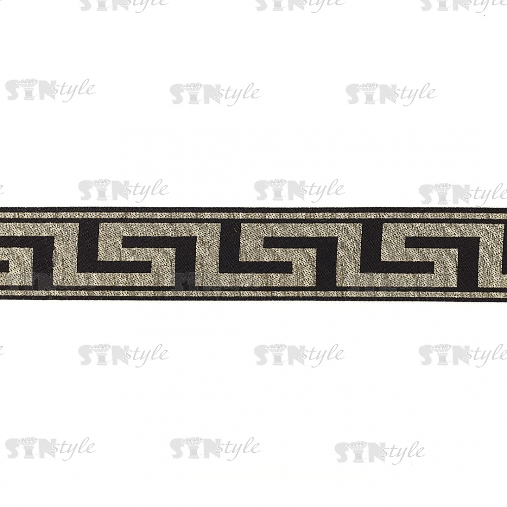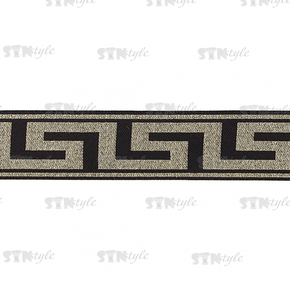 Жаккардовая лента, цвет черный+ золото, ширина 33 мм, намотка 10 метров