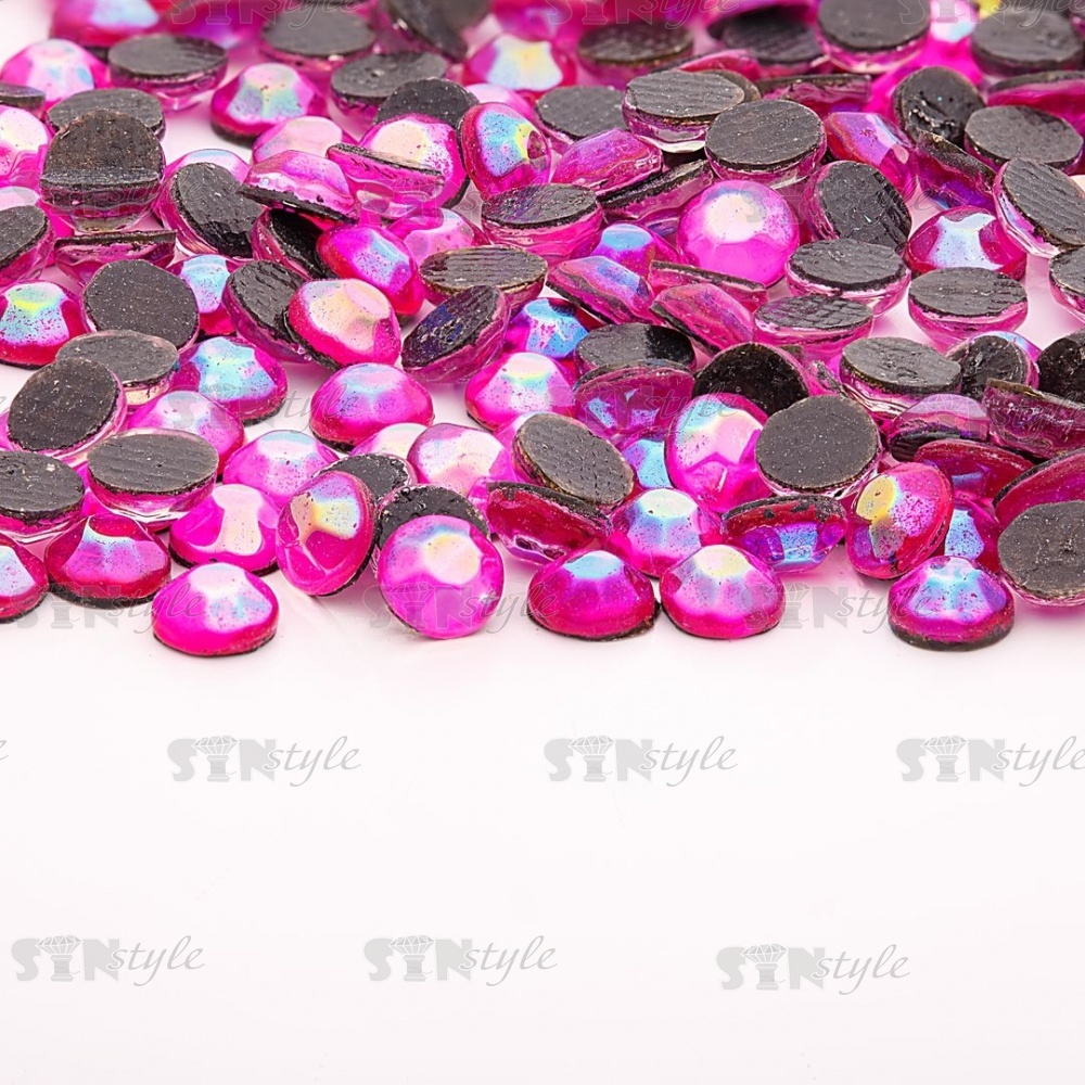 Стразы термоклеевые акриловые SS16, цвет красный радужный (голография), 500гр/уп