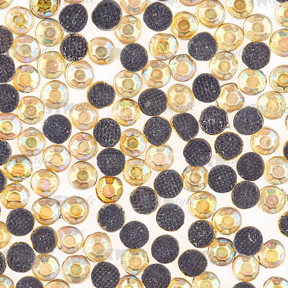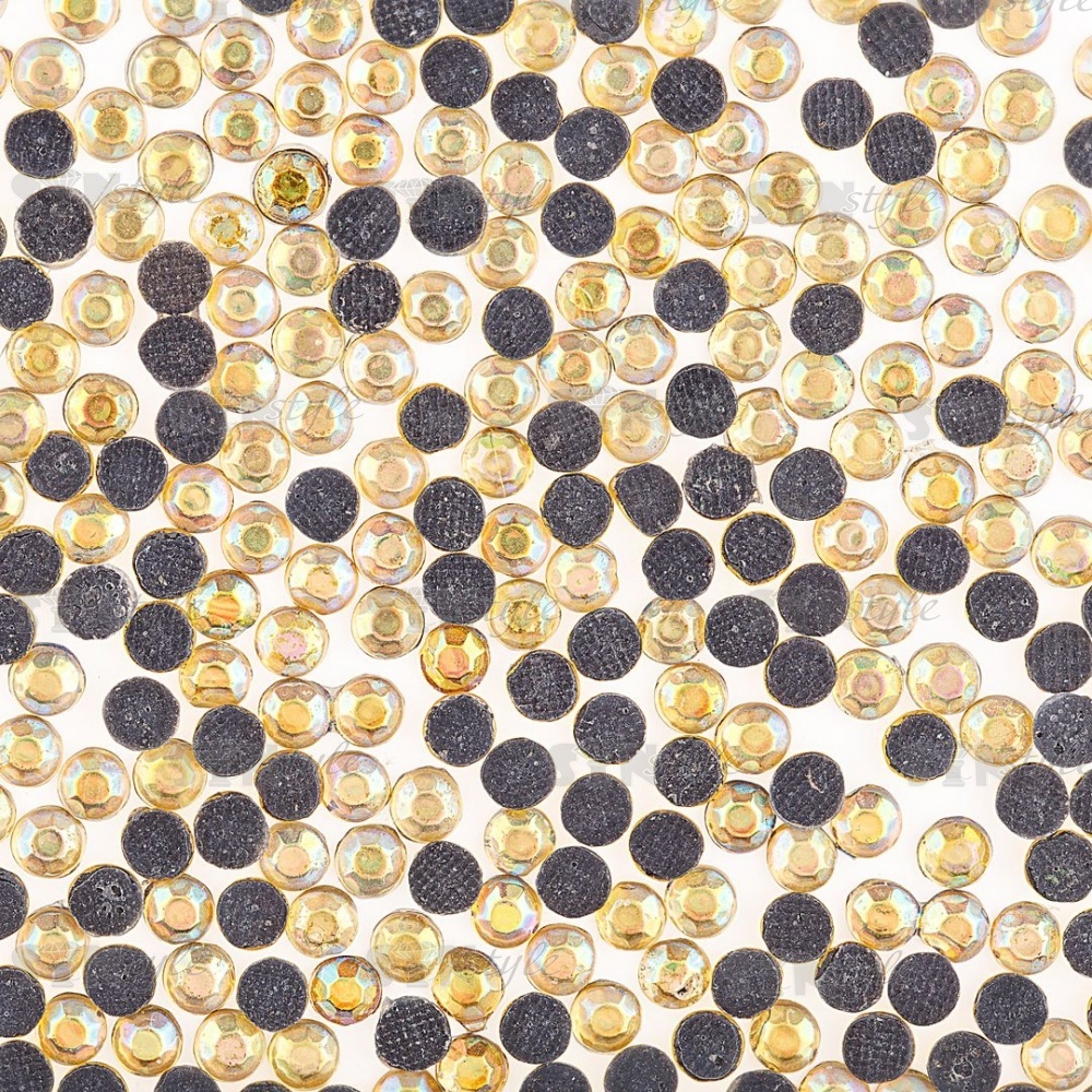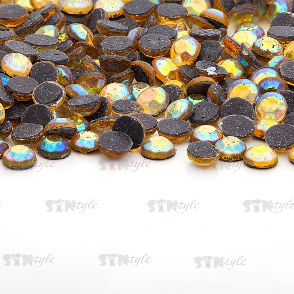 Стразы термоклеевые акриловые SS16, цвет желтый радужный (голография), 500гр/уп