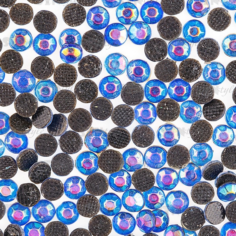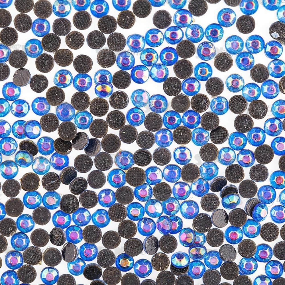 Стразы термоклеевые акриловые SS16, цвет голубой радужный (голография), 500 гр/уп