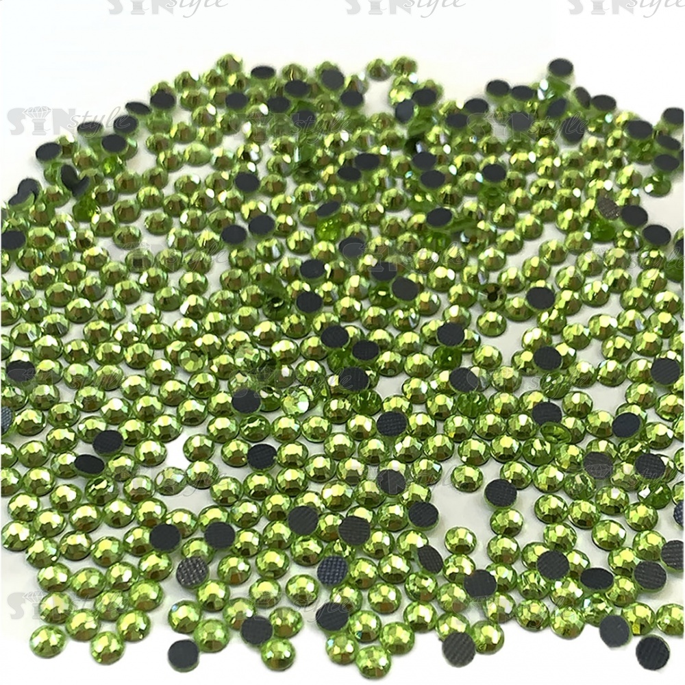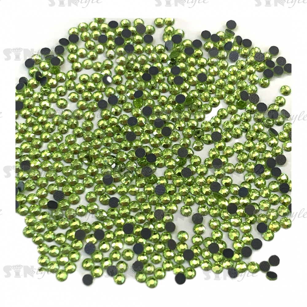 Стразы термоклеевые стеклянные SS16, форма круг, цвет салатовый (908), 1440 шт/уп
