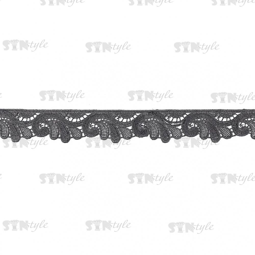 Кружево ажурное, красивая нежная гирлянда с резным краем, ширина 35 мм, цвет черный, намотка 15 ярдов