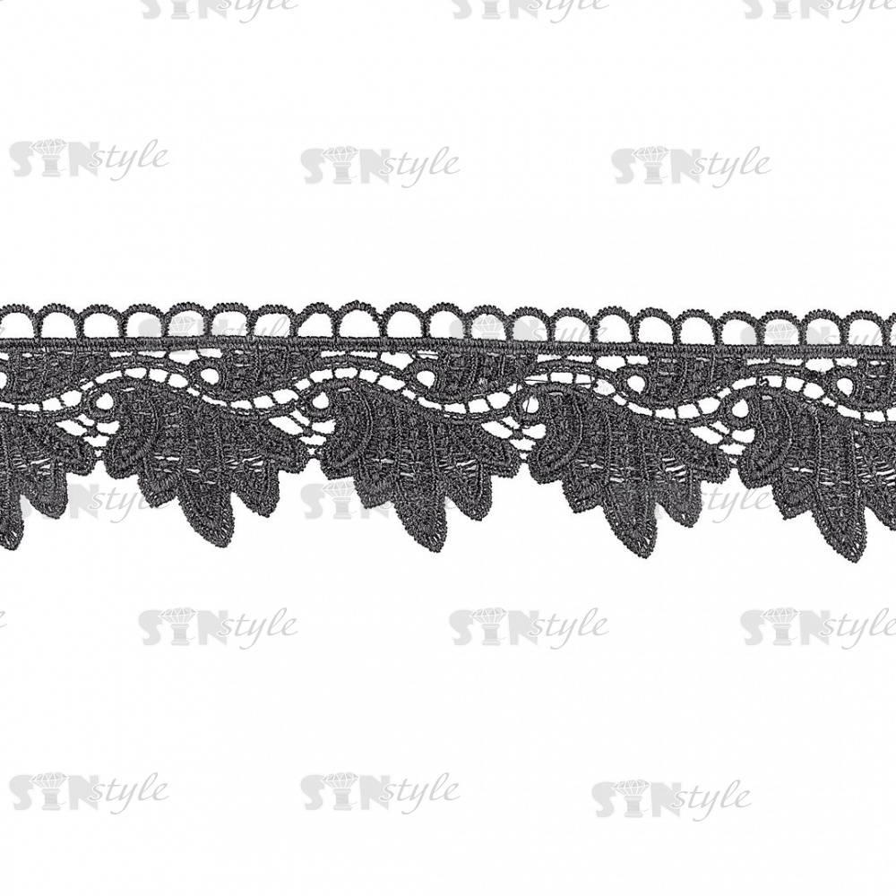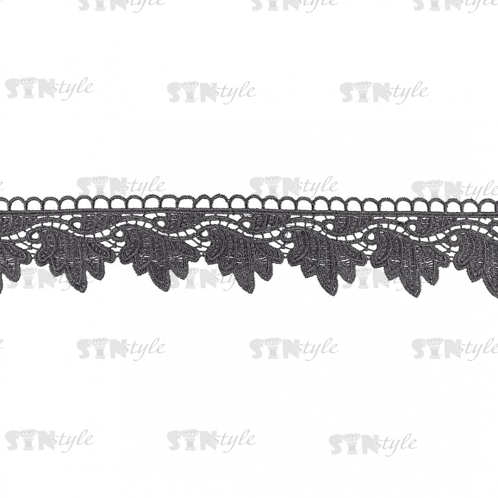 Кружево ажурное, красивая тонкая гирлянда из листьев с резным краем, ширина 60 мм, цвет черный, намотка 15 ярдов