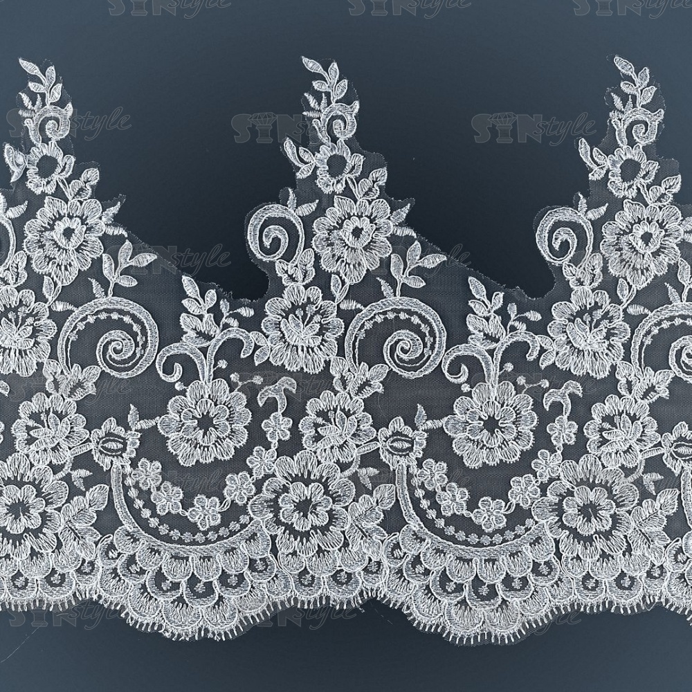 Кружево гипюр, ширина 330 мм, цвет кипенно-белый, намотка 10 ярдов