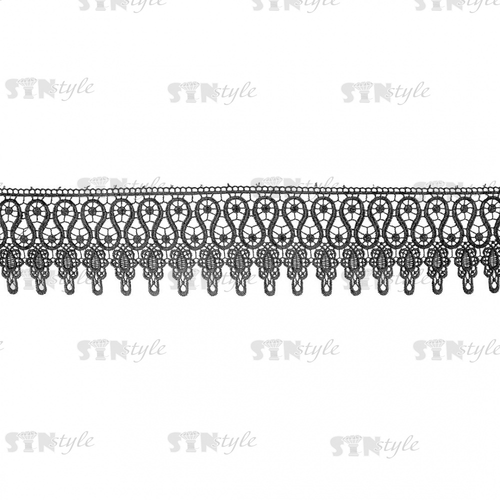 Кружево ажурное, тонкая нежная гирлянда с резным краем, ширина 90 мм, цвет черный, намотка 15 ярдов