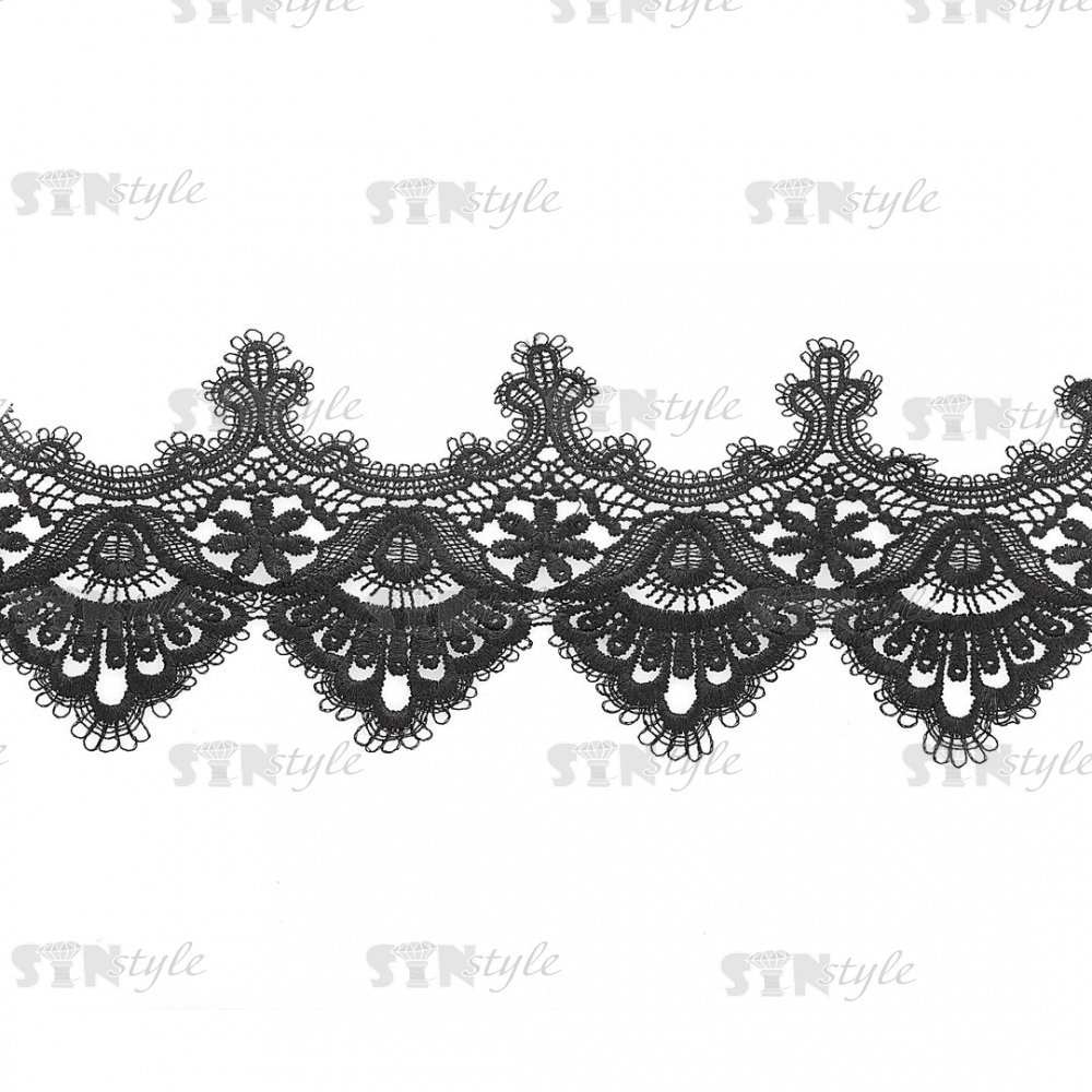 Кружево ажурное, красивая воздушная гирлянда с причудливым узором и резным краем, ширина 110 мм, цвет черный, намотка 15 ярдов