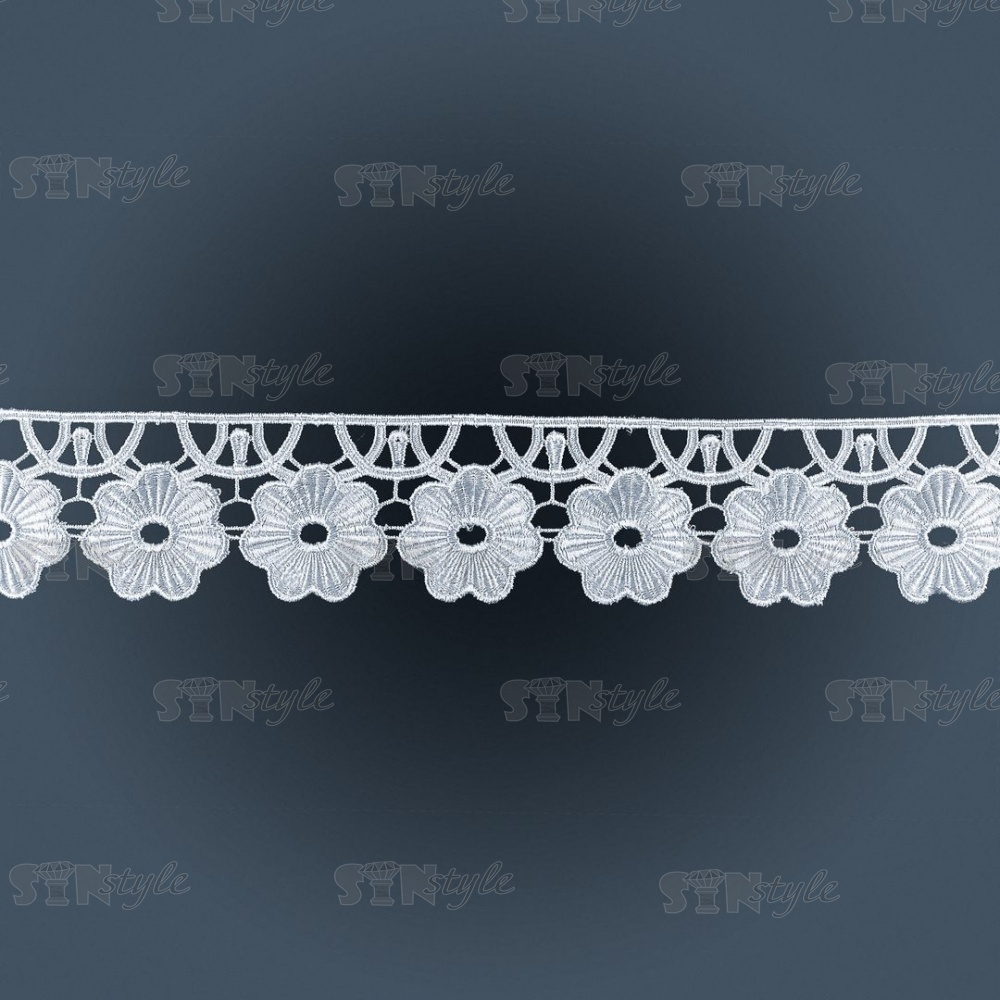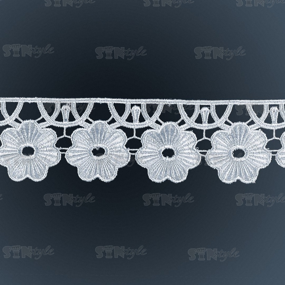 Кружево ажурное с цветочным узором, ширина 65 мм, цвет белый, намотка 15 ярдов