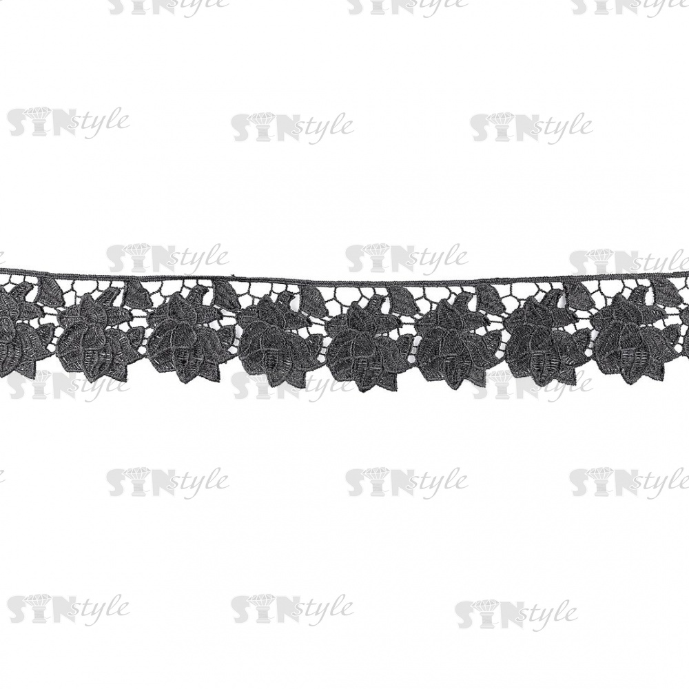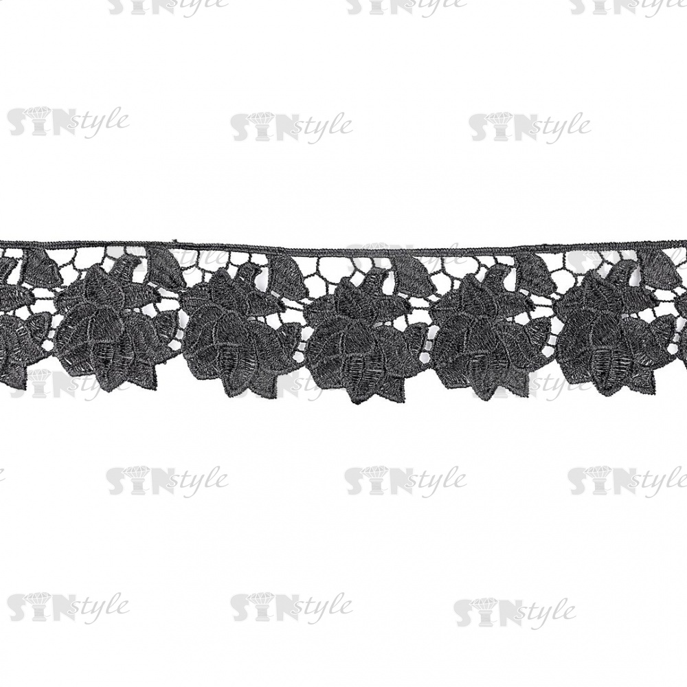 Кружево ажурное с цветочным узором, ширина 60 мм, цвет черный, намотка 15 ярдов