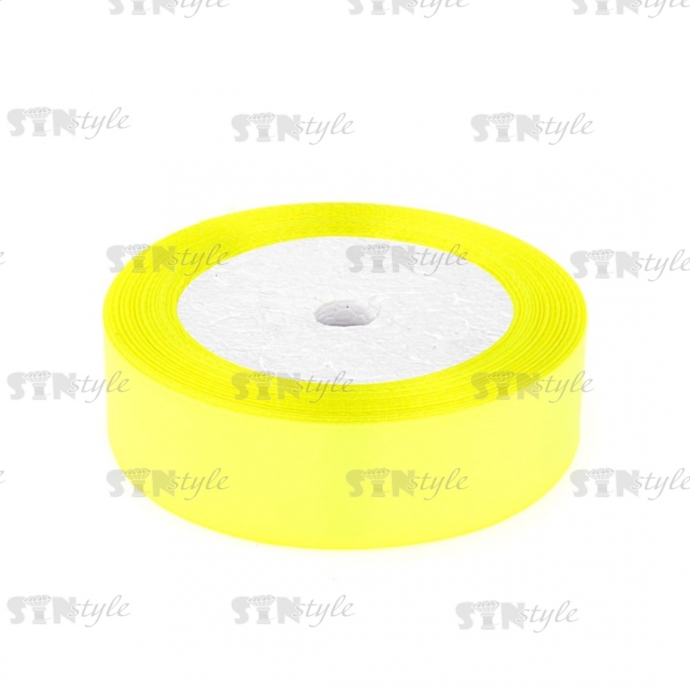 Декоративная лента атласная ширина 25 мм, намотка 25Y, цвет ярко-желтый (№058)