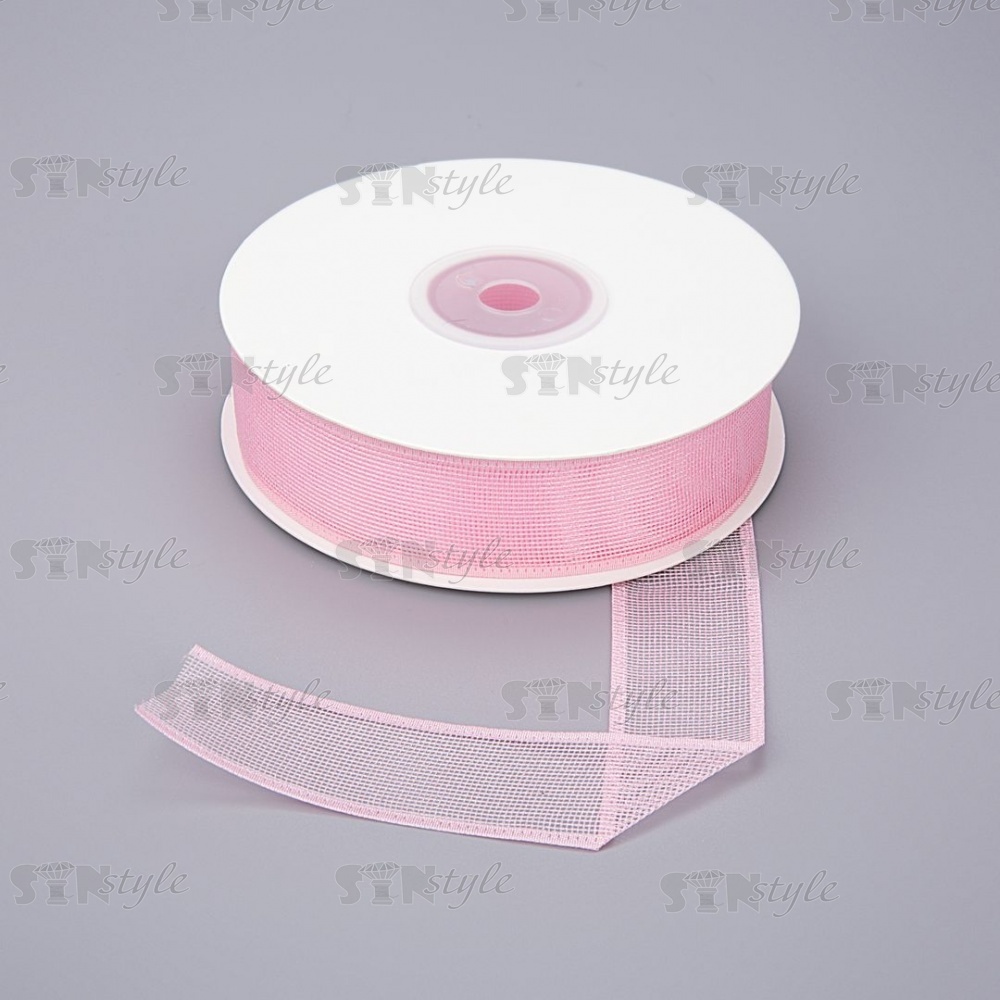 Декоративная лента капроновая, ширина 25 мм, намотка 25 ярдов, цвет розовый