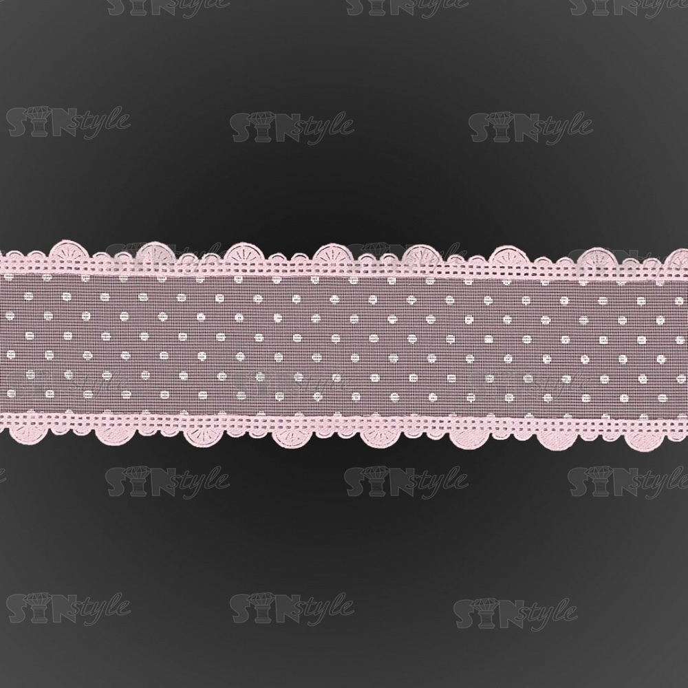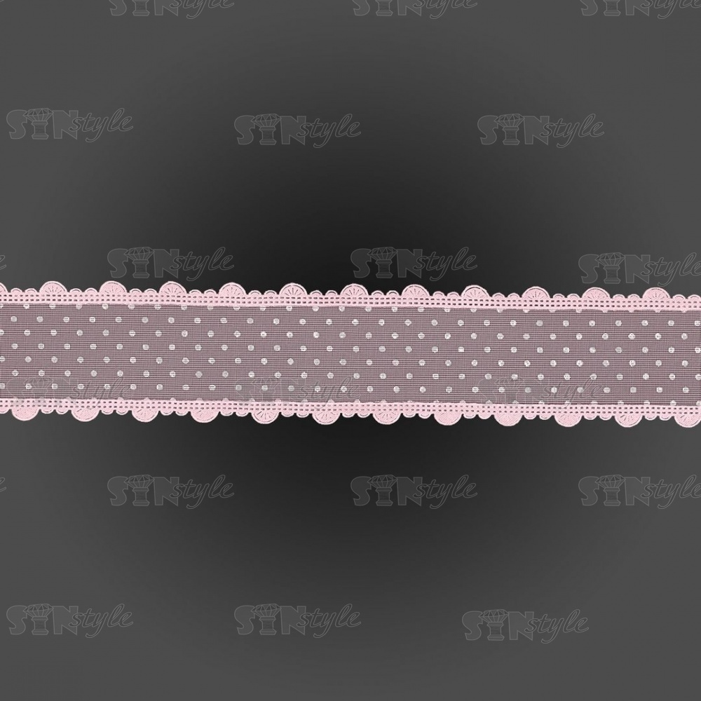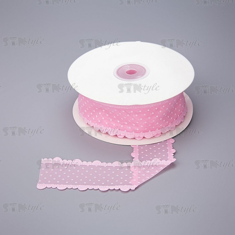 Декоративная лента капроновая "в крапинку" с фигурной каймой, ширина 40 мм, намотка 25 ярдов, цвет розовый