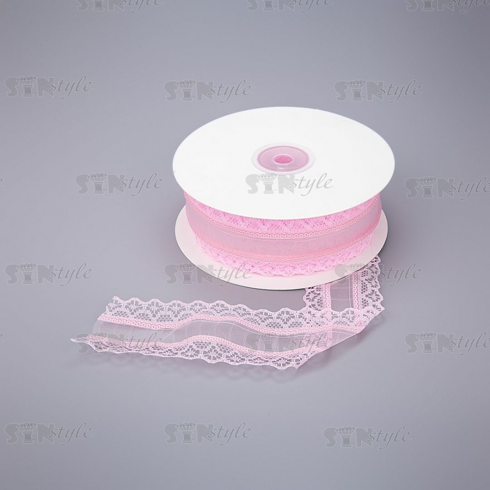 Декоративная лента капроновая ажурная, ширина 40 мм, намотка 25 ярдов, цвет розовый