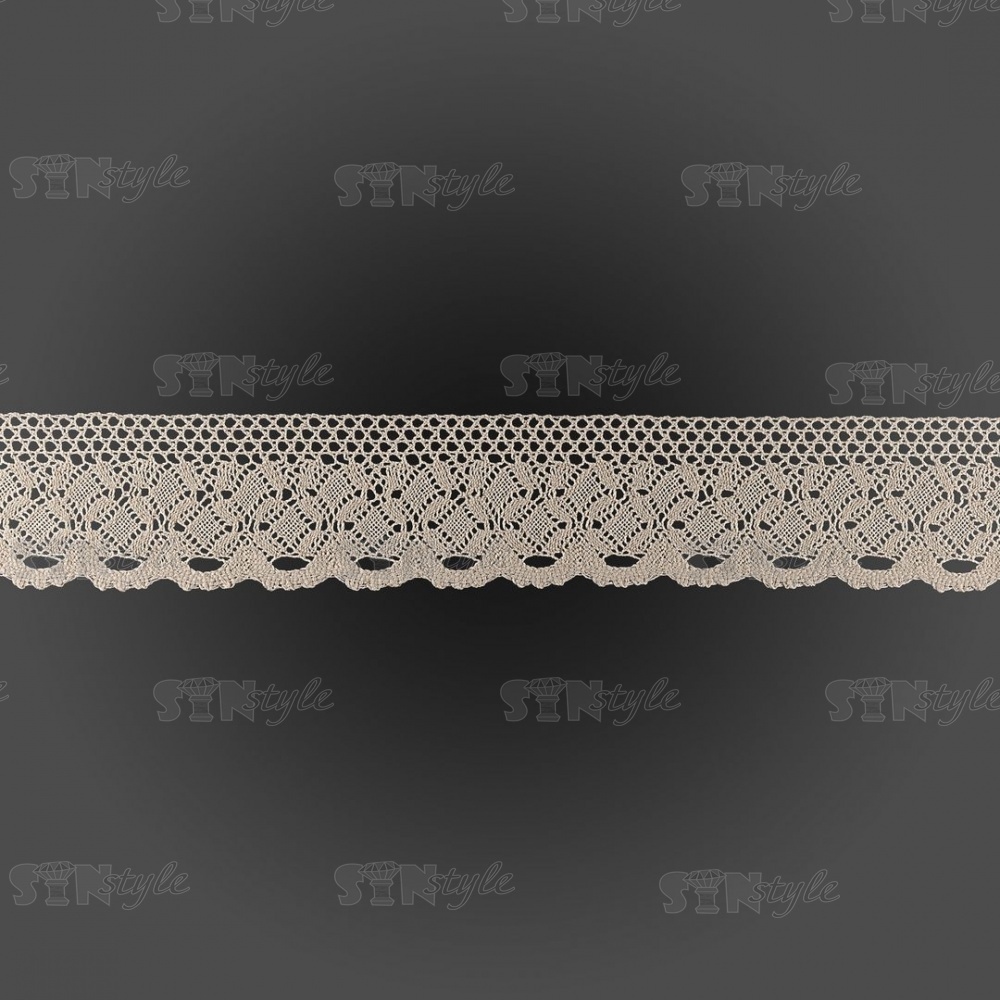 Кружево вязаное плетеное, ширина 70 мм, цвет бежевый, намотка 15 ярдов