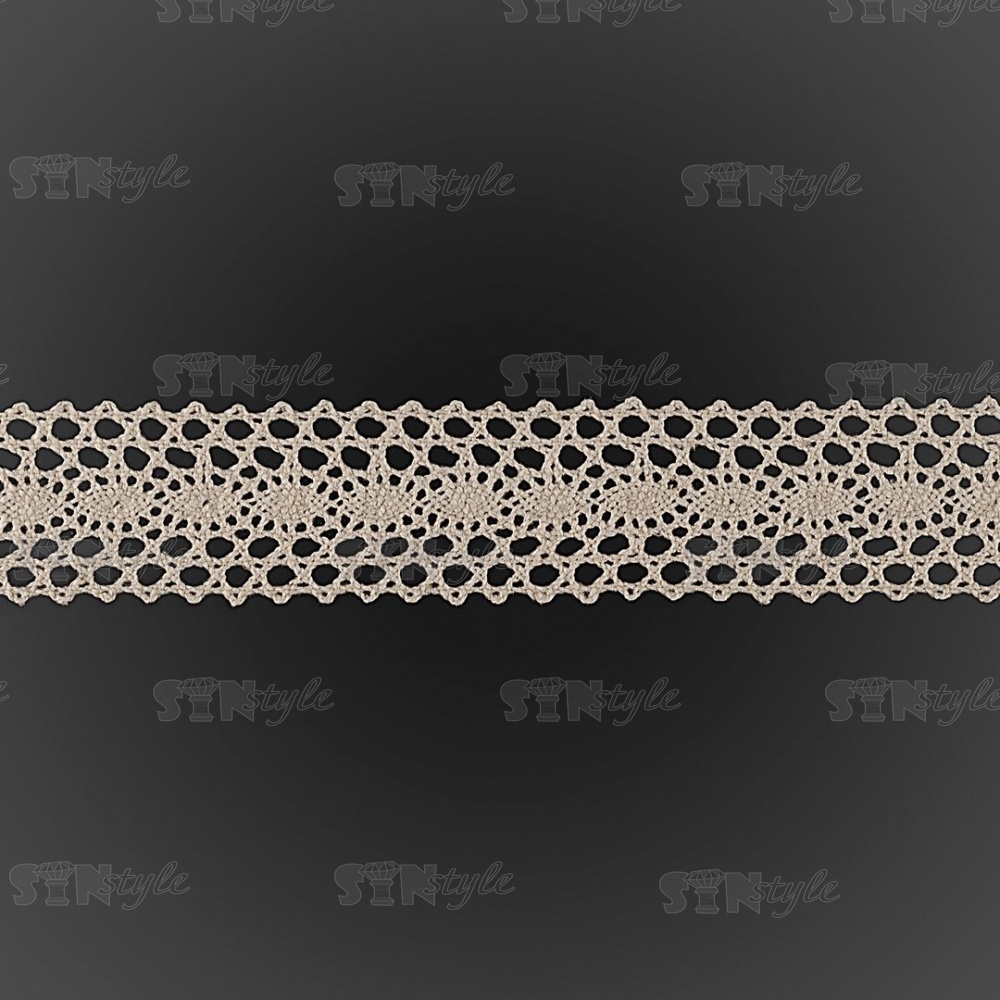 Кружево вязаное плетеное, ширина 33 мм, цвет бежевый, намотка 15 ярдов