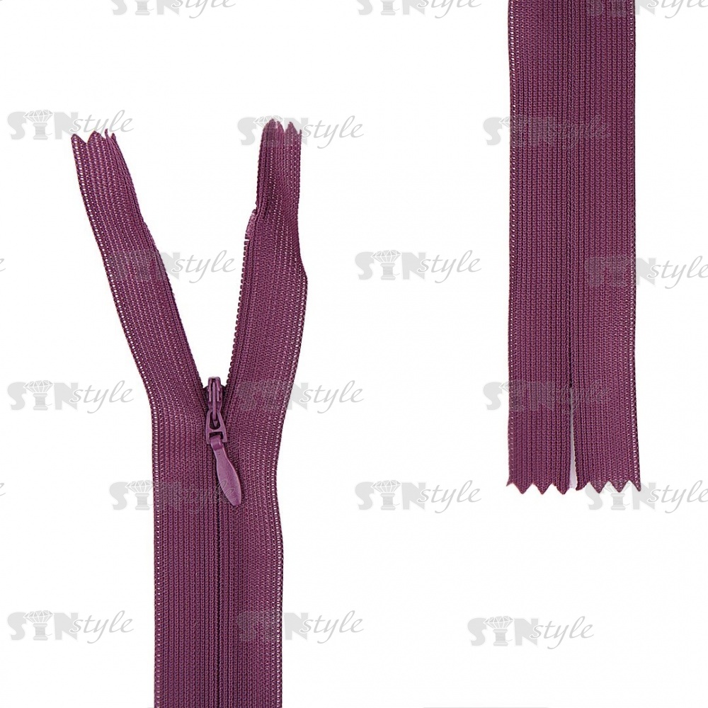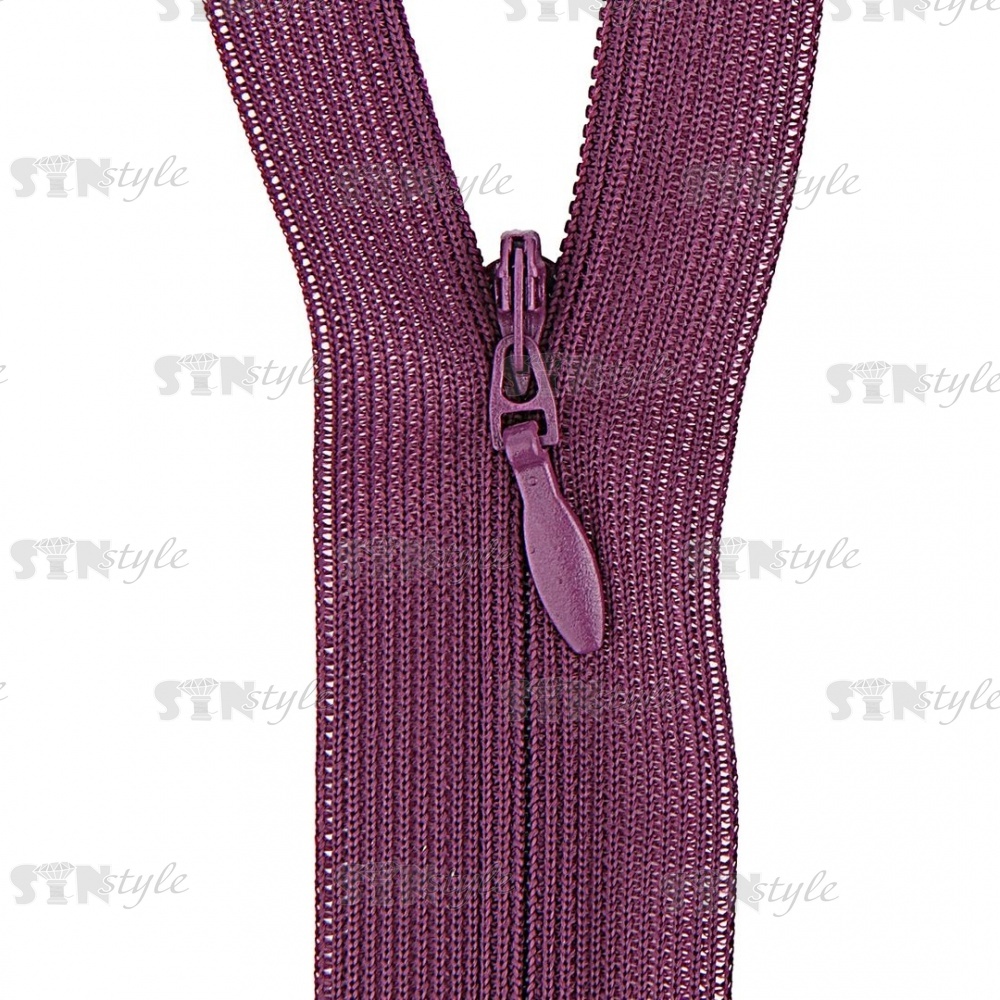 Молния спираль, тип 3, потайная, неразъемная, основа капрон, длина 50 см, цвет 174 (темно-сливовый), бегунок цвета основы