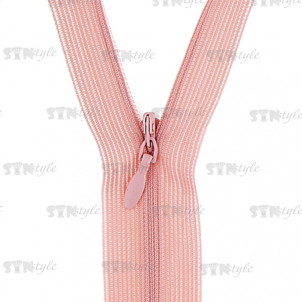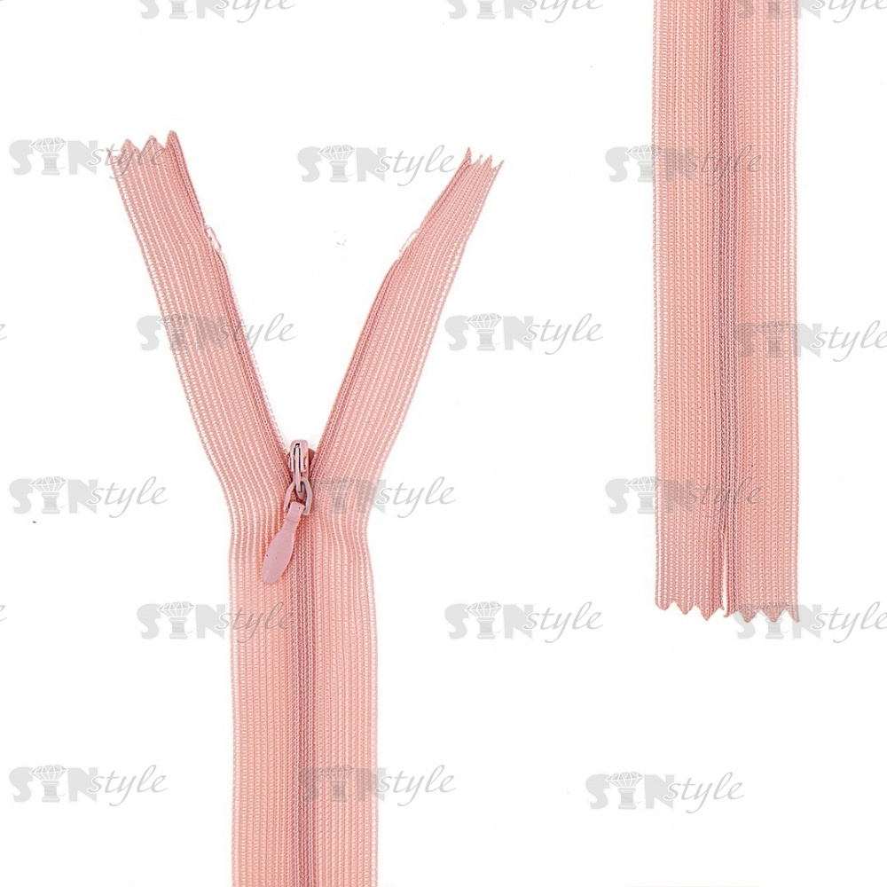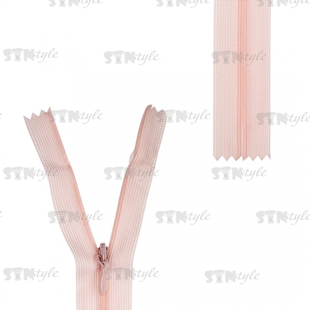 Молния спираль, тип 3, потайная, неразъемная, основа капрон, длина 50 см, цвет 344 (бежево-розовый), бегунок цвета основы