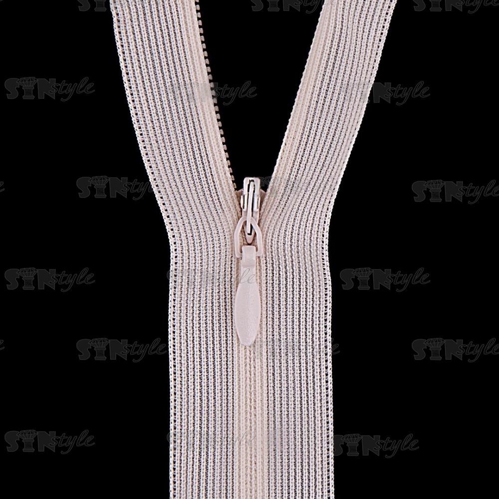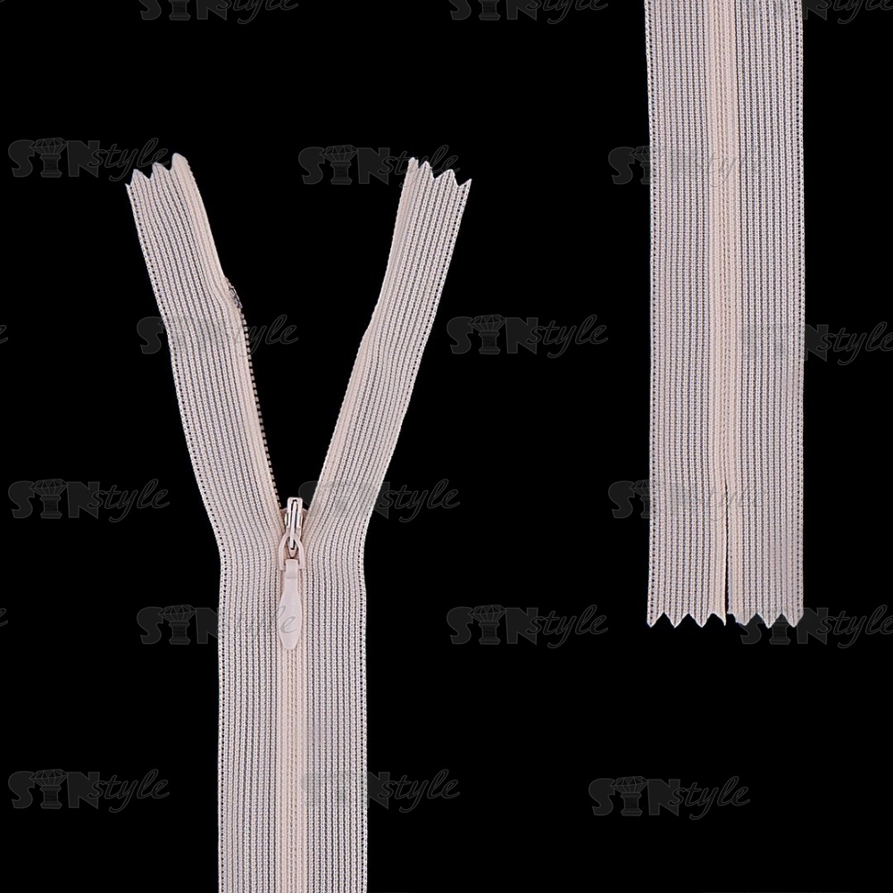 Молния спираль, тип 3, потайная, неразъемная, основа капрон, длина 50 см, цвет 123 (шампань), бегунок цвета основы