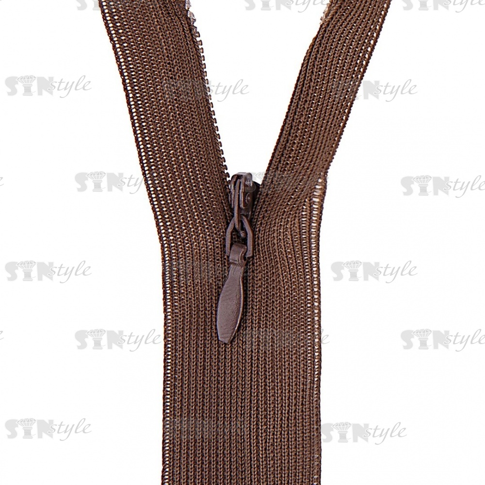 Молния спираль, тип 3, потайная, неразъемная, основа капрон, длина 50 см, цвет 394 (темный хаки), бегунок цвета основы
