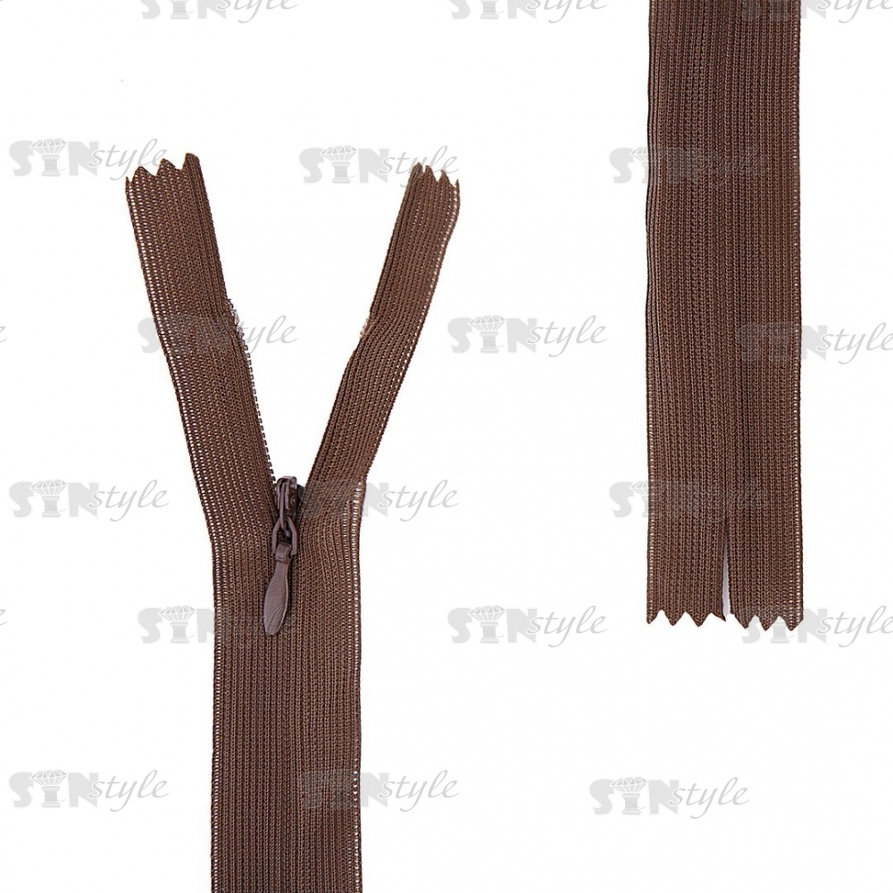 Звенья застежки расположены с изнаночной стороны молнии и закрыты тесьмой,