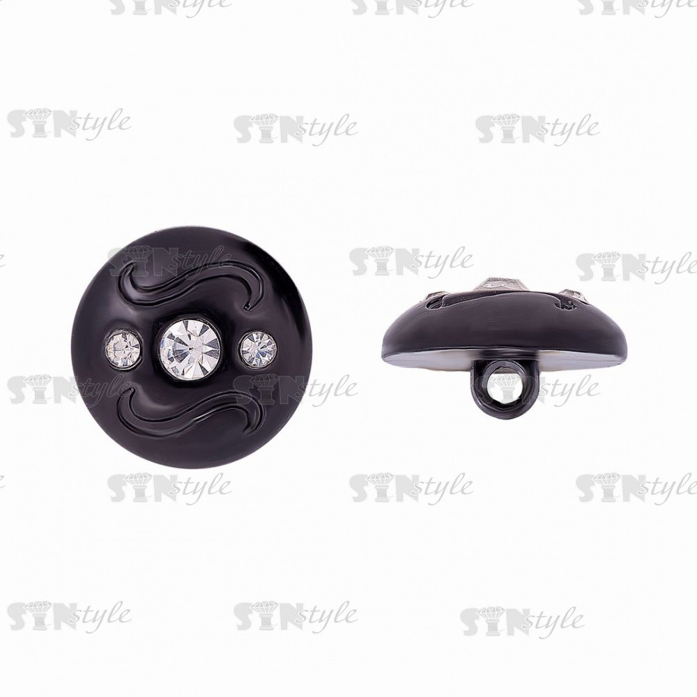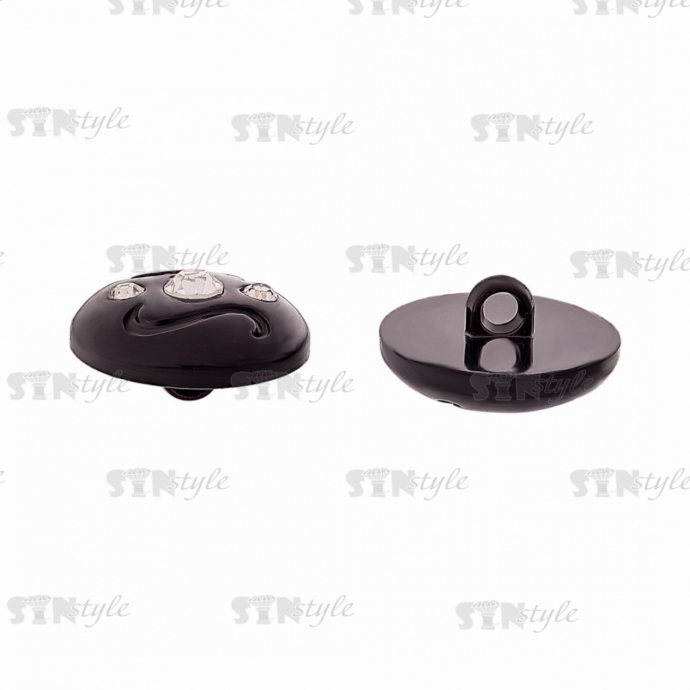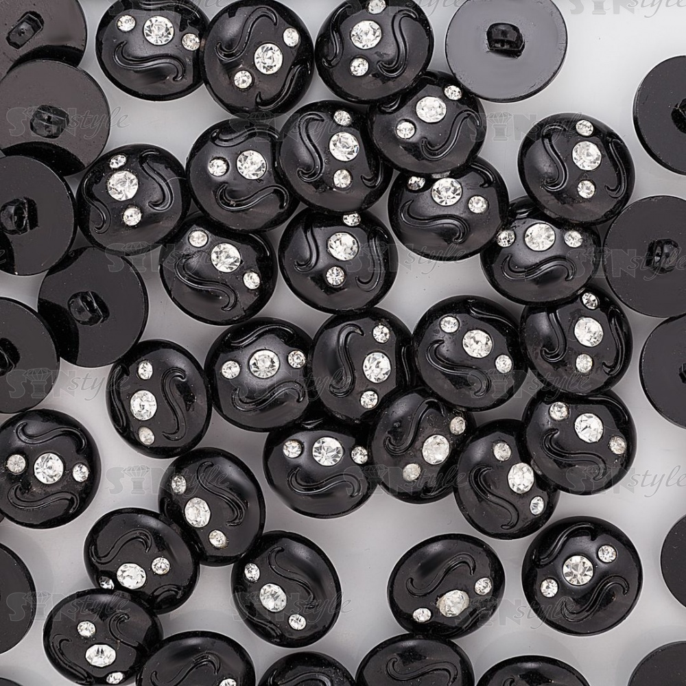 Пуговица пластиковая на ножке, форма полусферы, цвет черный с белыми стразами, 28L