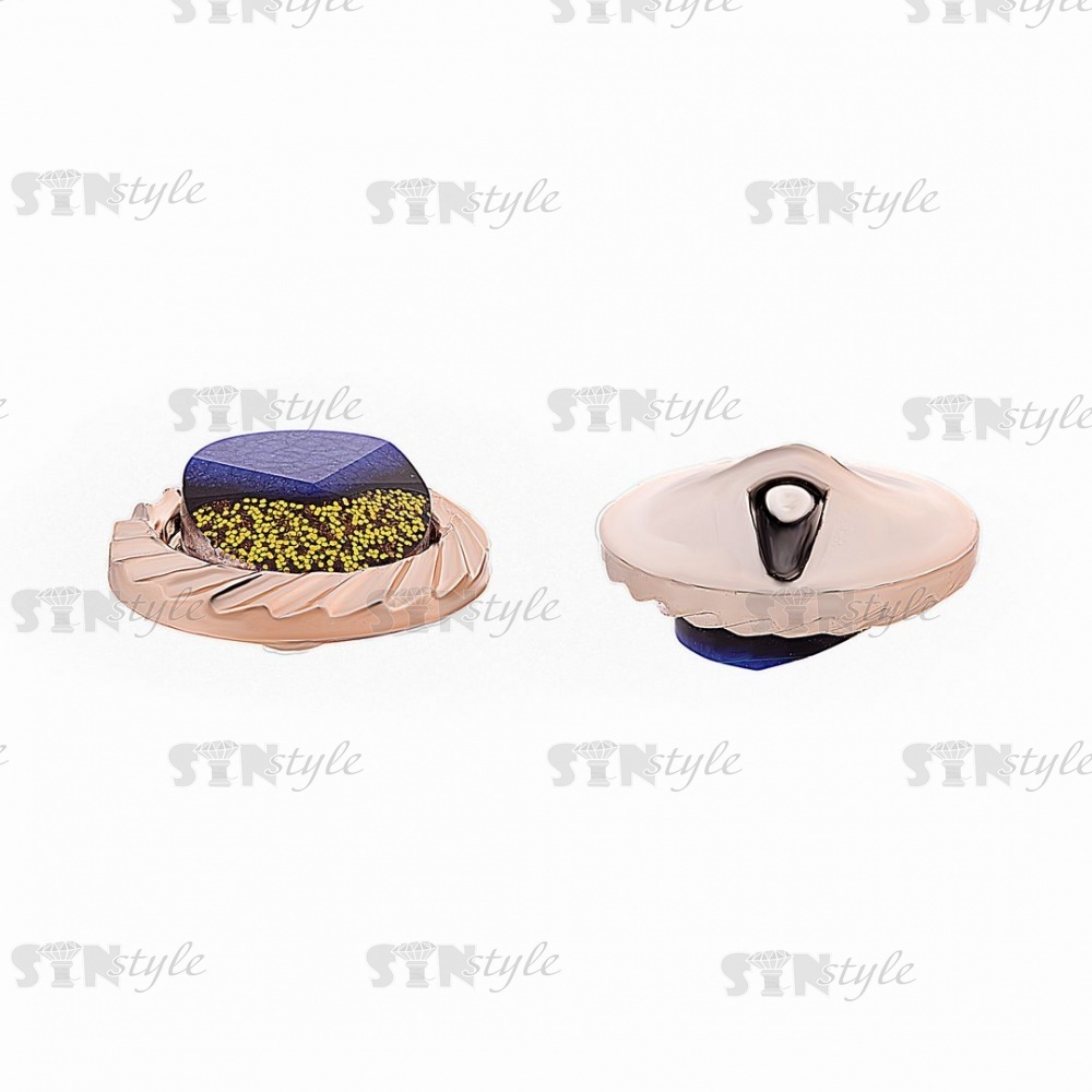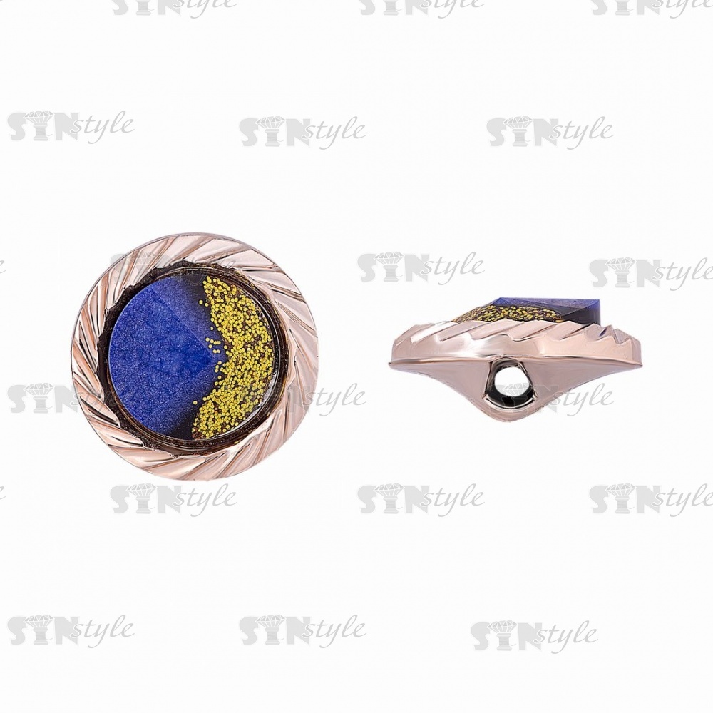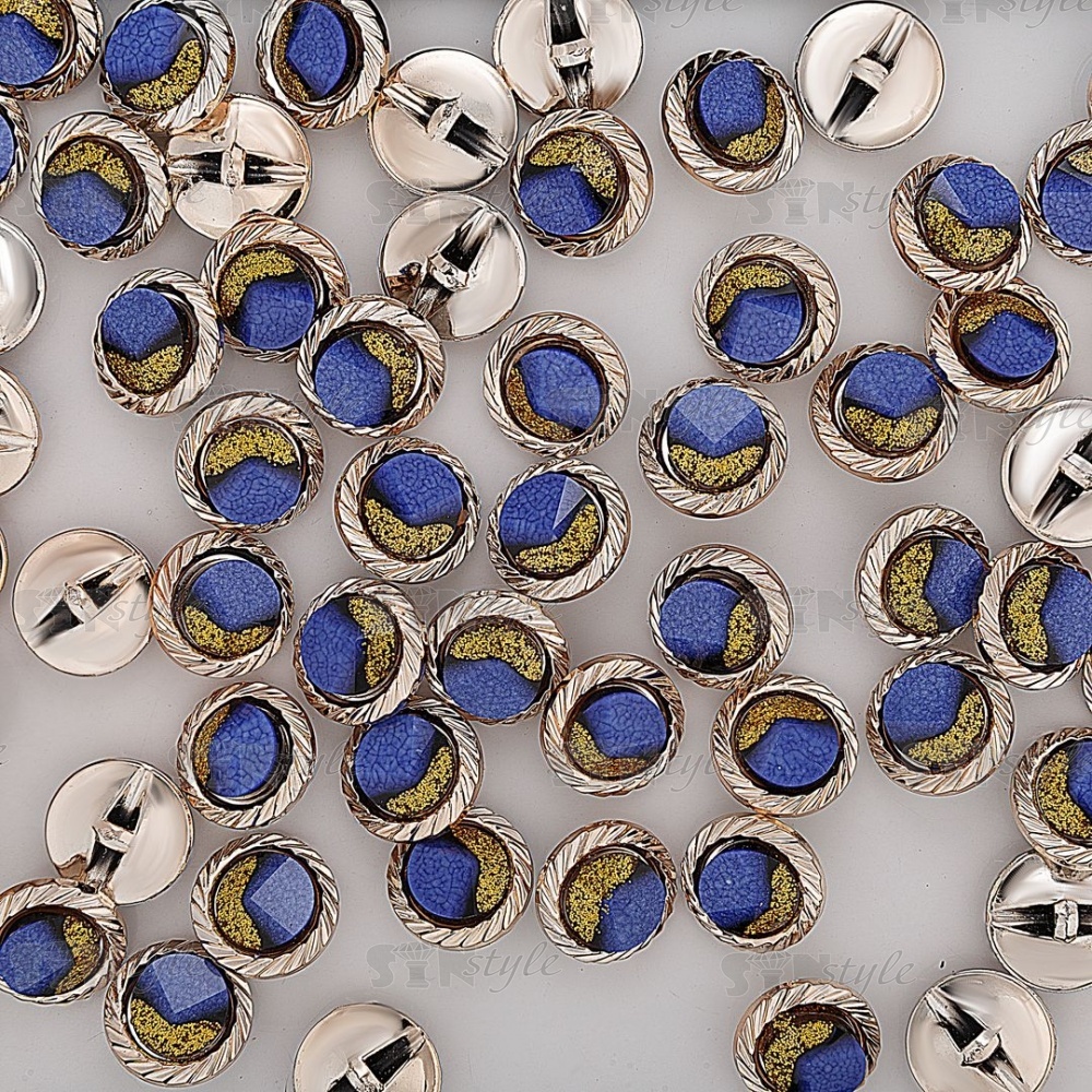 Пуговица пластиковая на полуножке, размер 28L, круглой формы, цвет золотой+синий