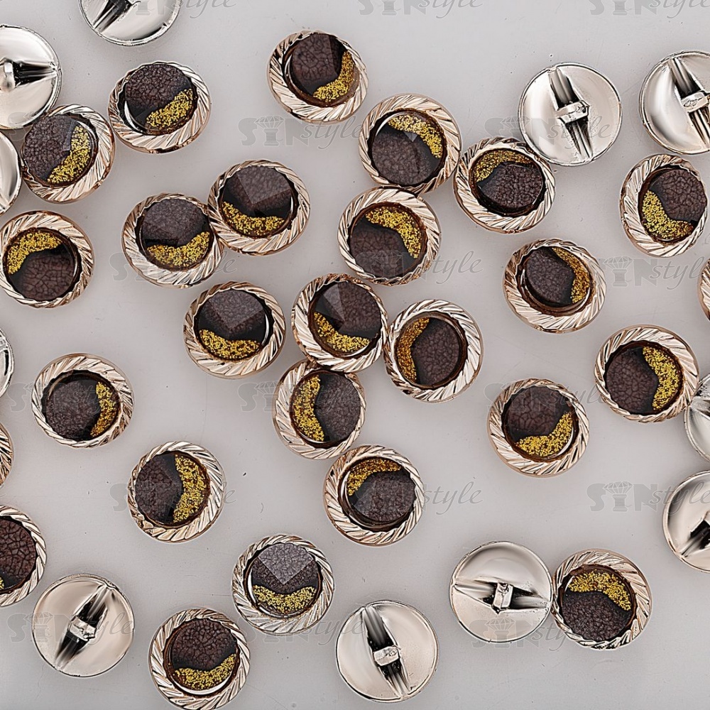 Пуговица пластиковая на полуножке, размер 28L, круглой формы, цвет золотой+коричневый
