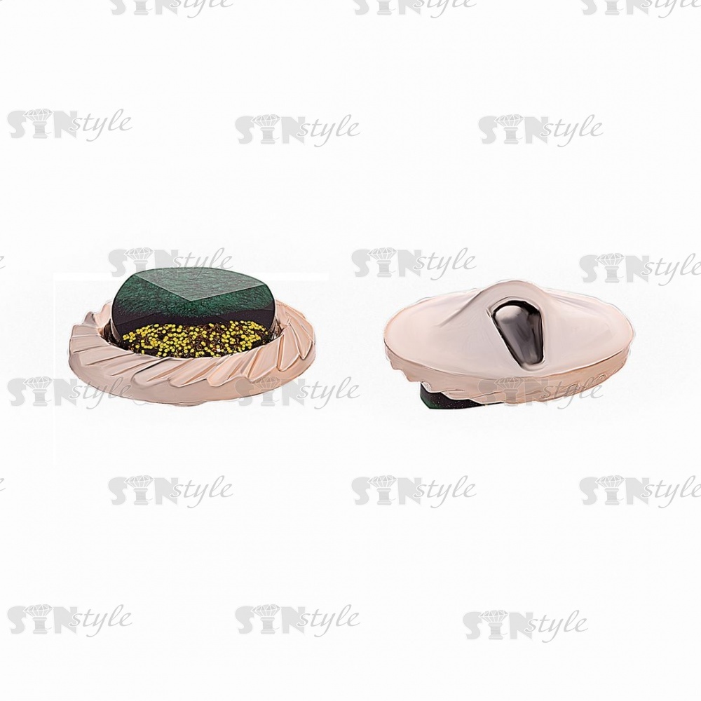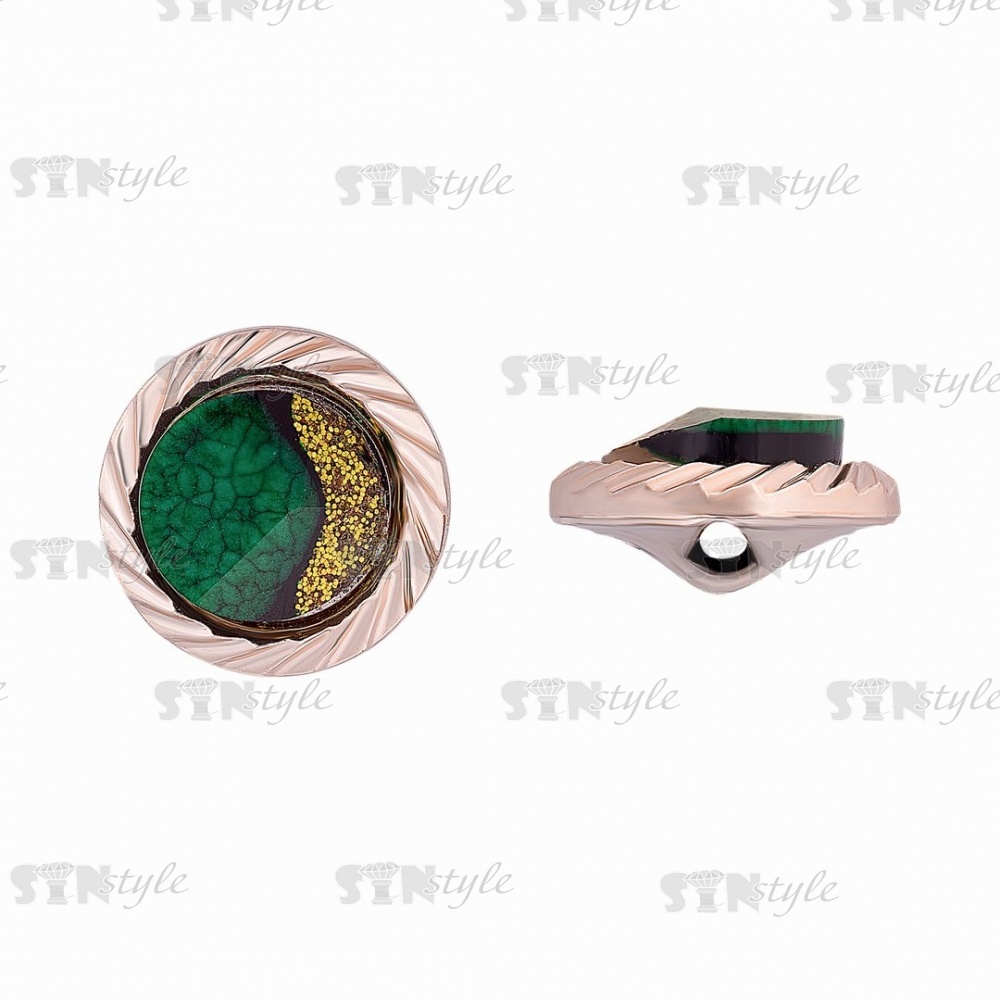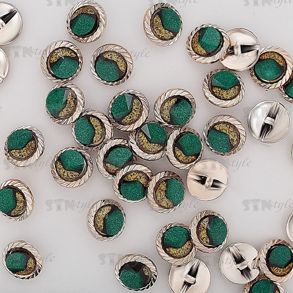 Пуговица пластиковая на полуножке, размер 28L, круглой формы, цвет золотой+зеленый