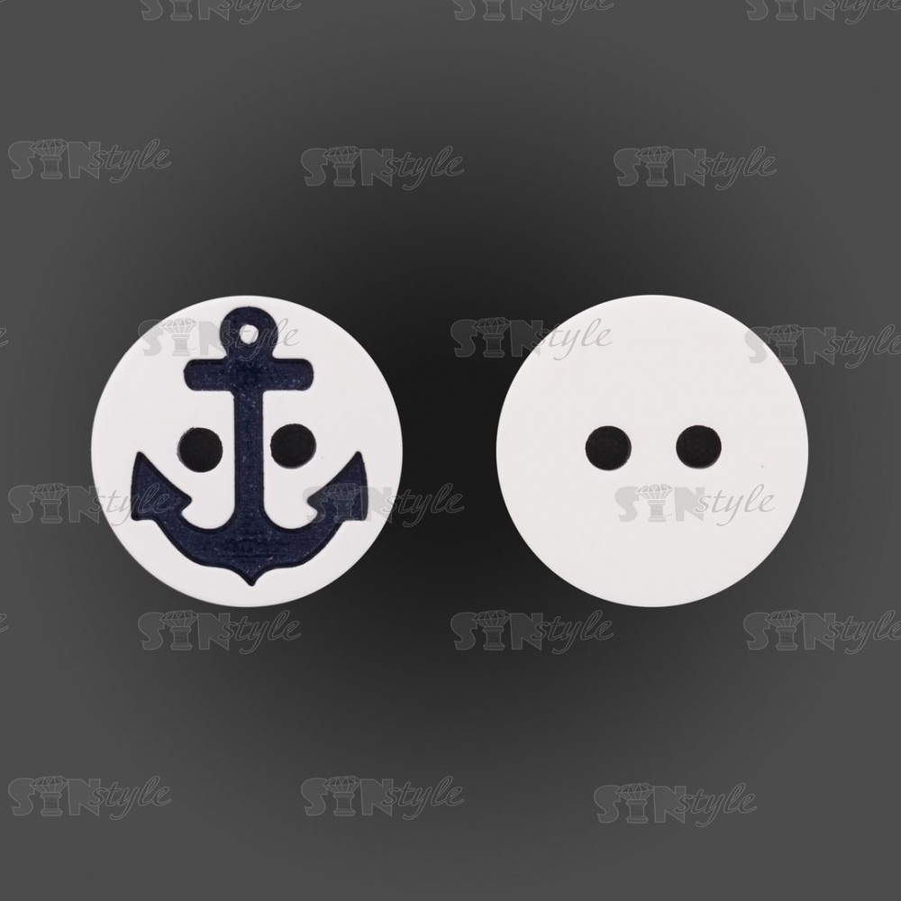 Пуговица пластиковая на два прокола, размер 20L, цвет белый/темно-синий