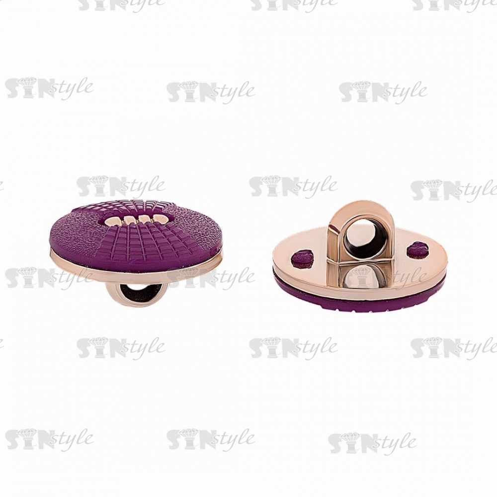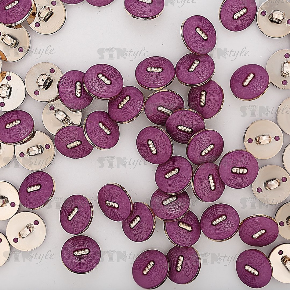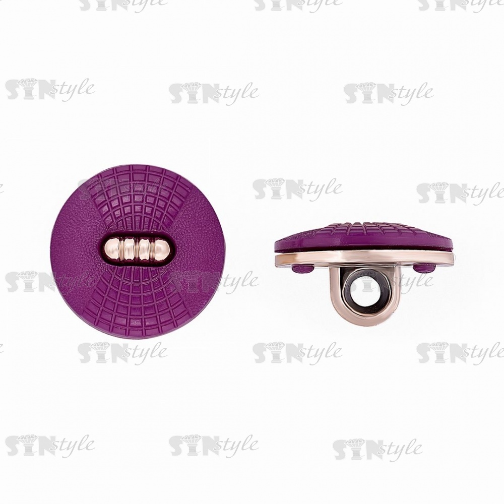 Пуговица пластиковая на ножке круглой формы, золотая основа с фиолетовой шляпкой, 28L