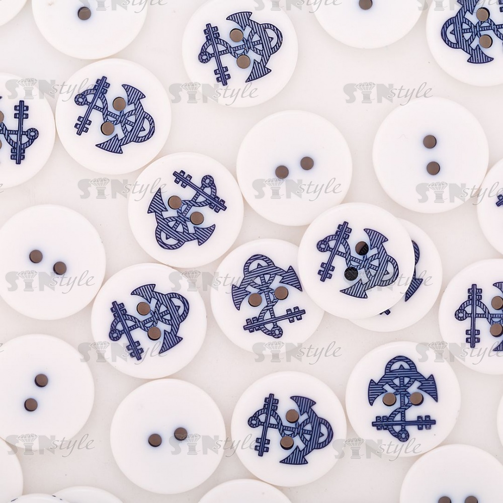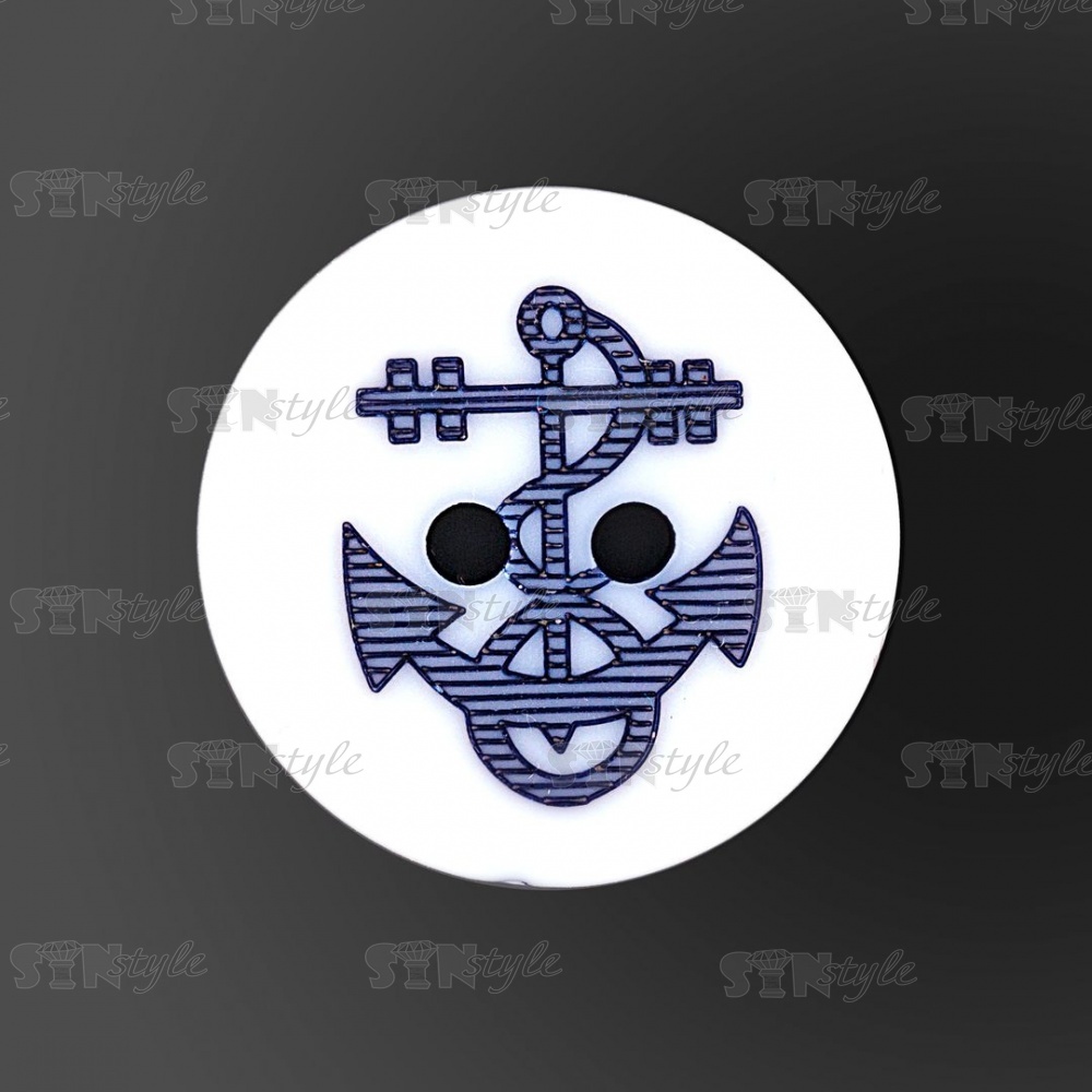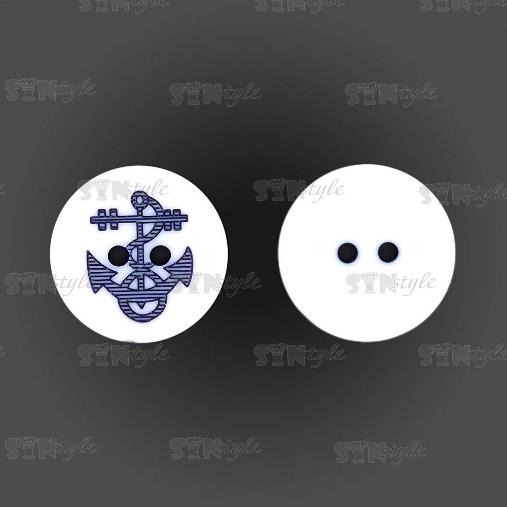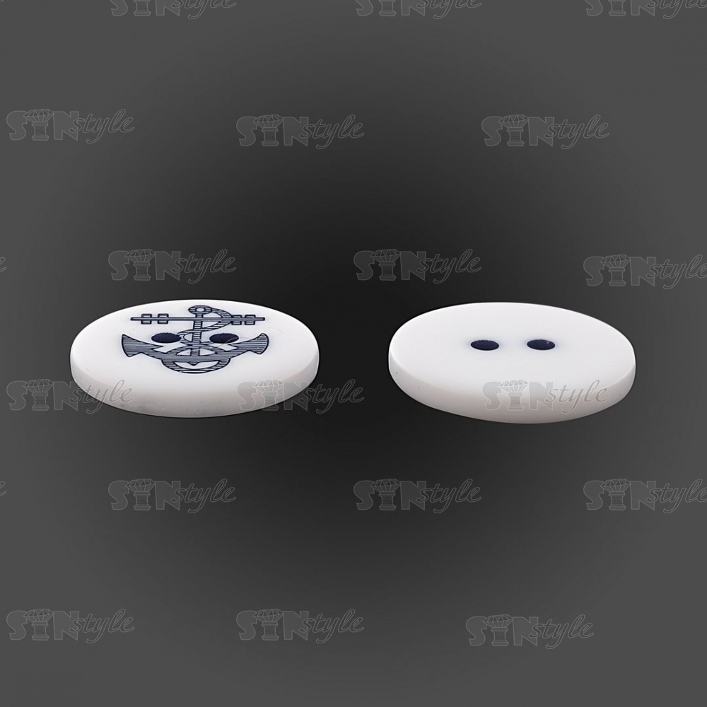 Пуговица пластиковая на два прокола, белая с темно-синим, 32L