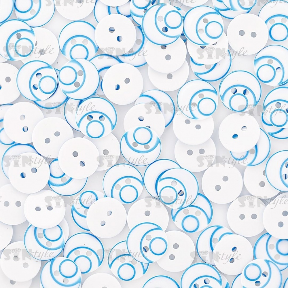 Пуговица пластиковая на два прокола, размер 20L, цвет белый/голубой
