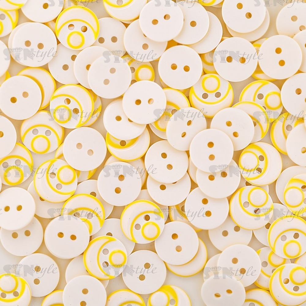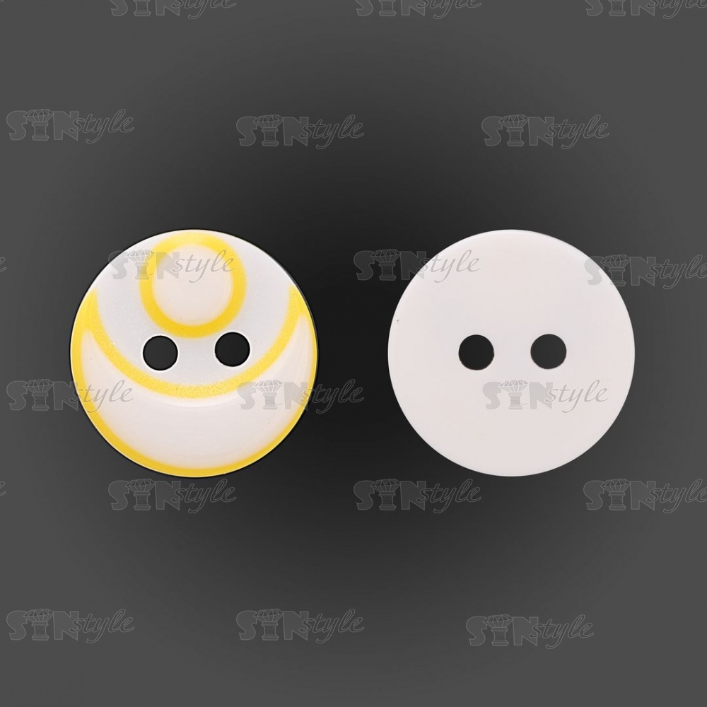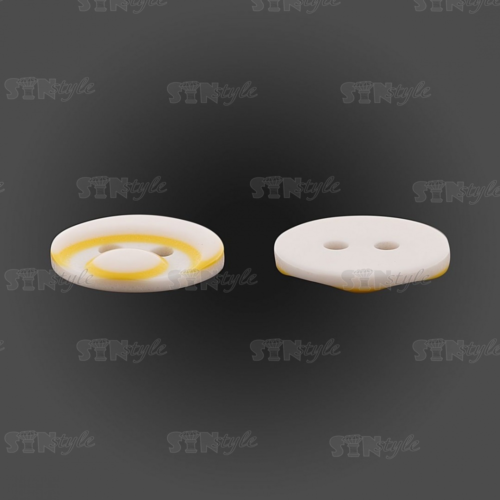 Пуговица пластиковая на два прокола, размер 20L, цвет белый/желтый
