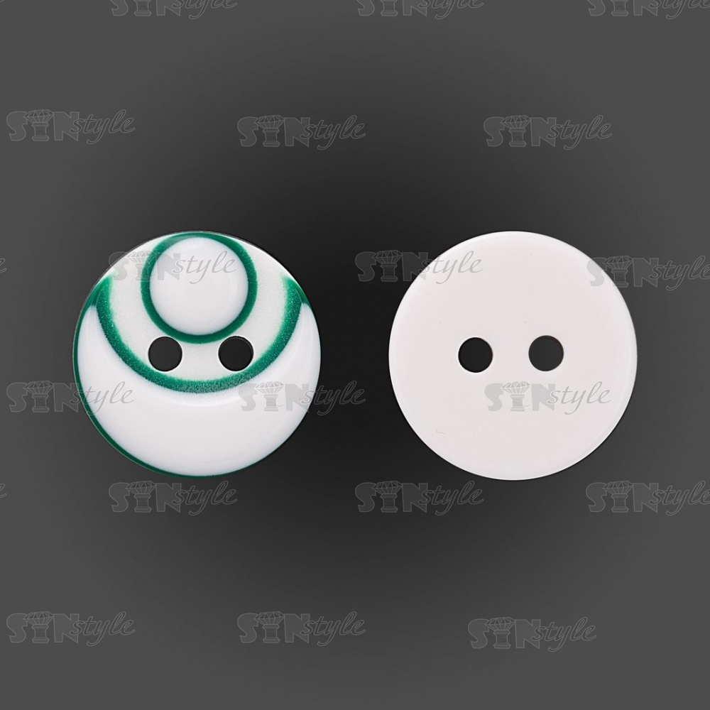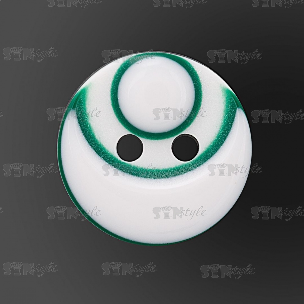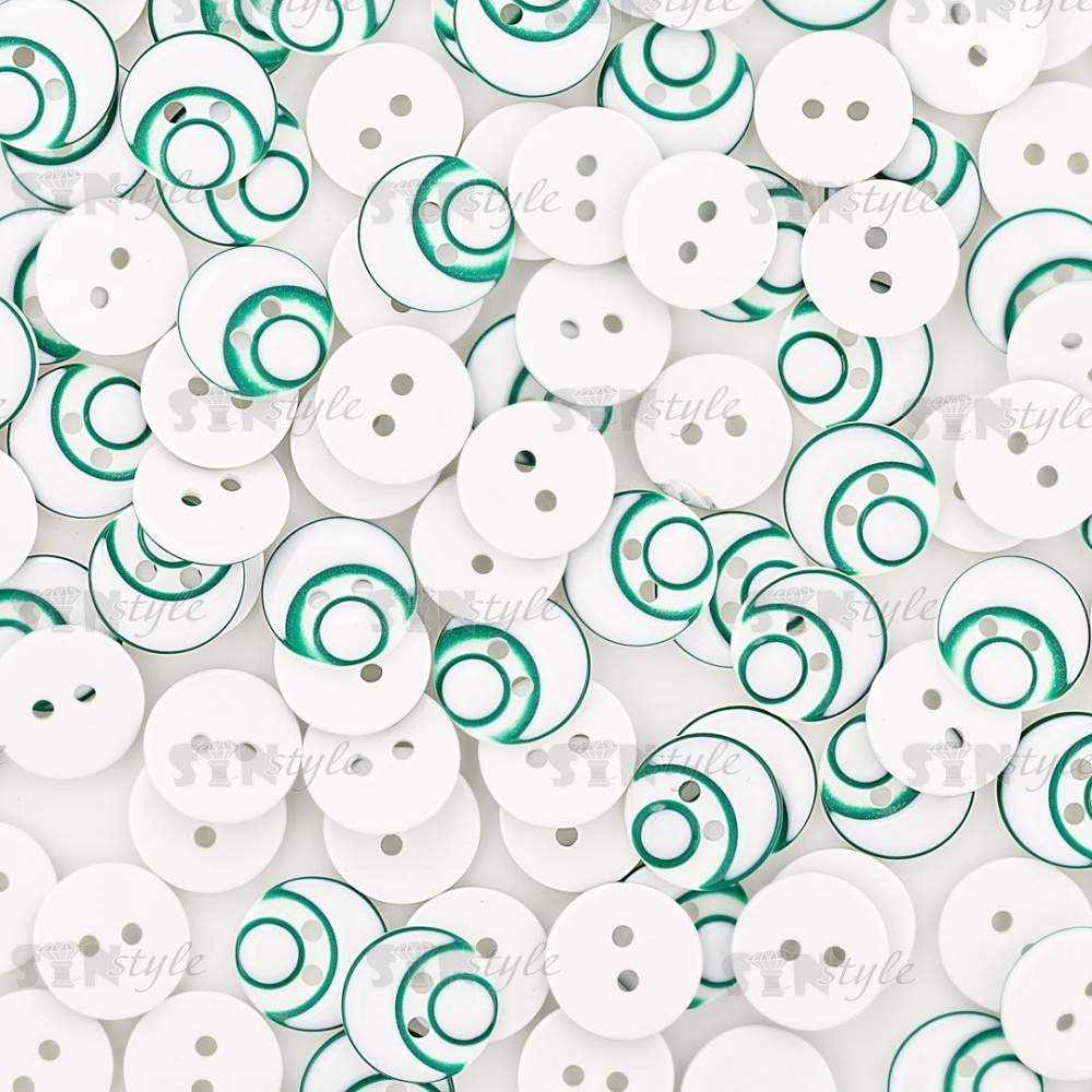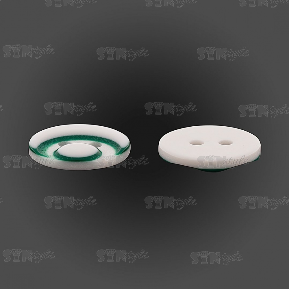 Пуговица пластиковая на два прокола, размер 20L, цвет белый/зеленый