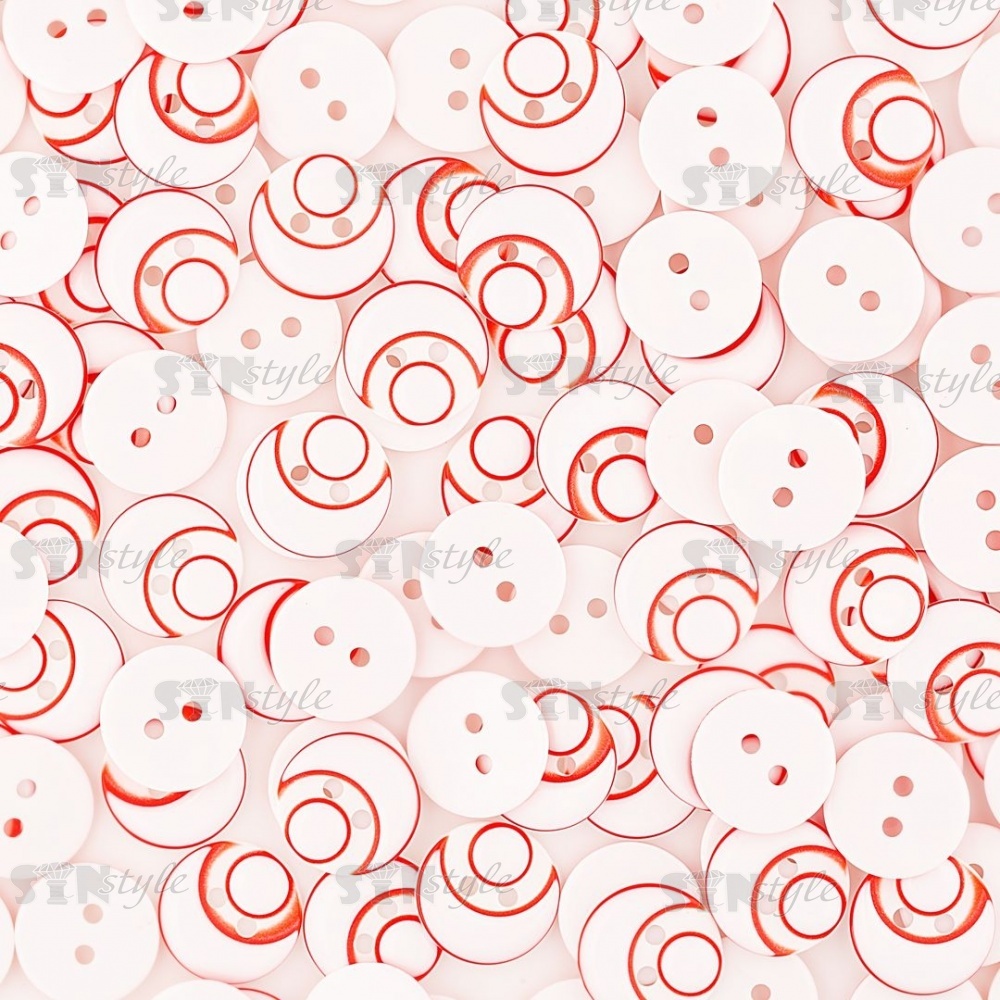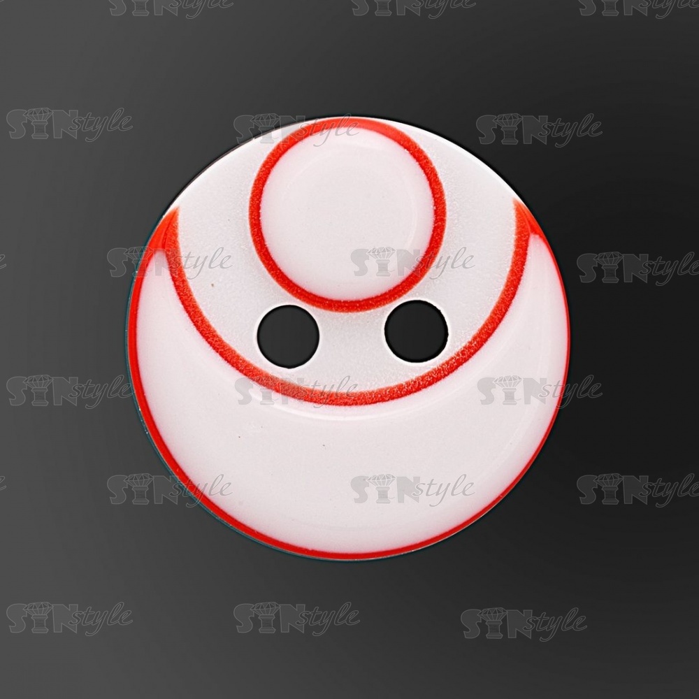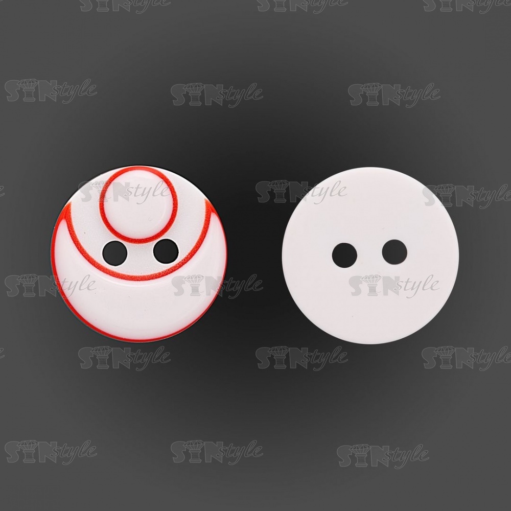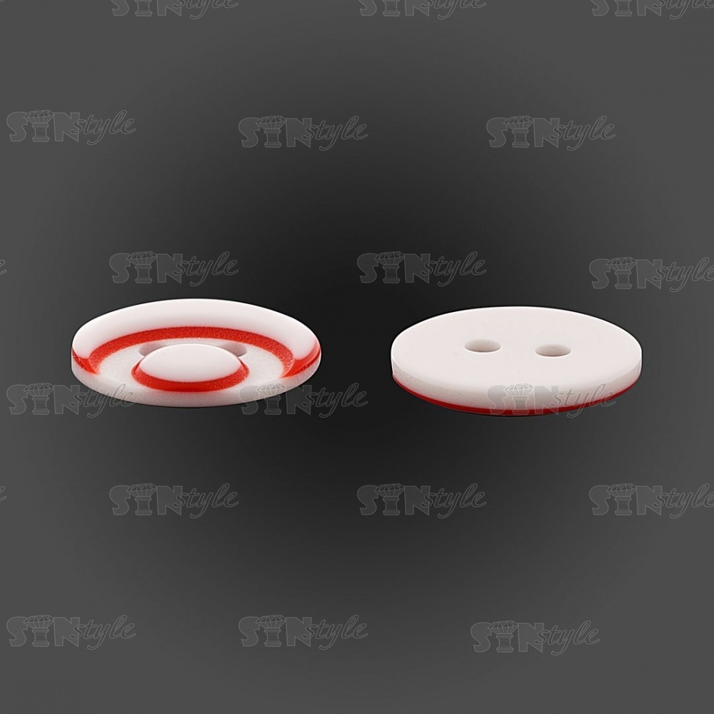 Пуговица пластиковая на два прокола, размер 20L, цвет белый/красный