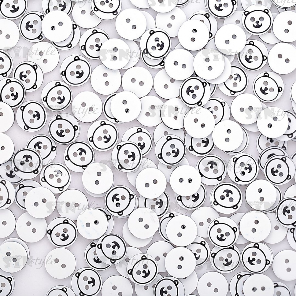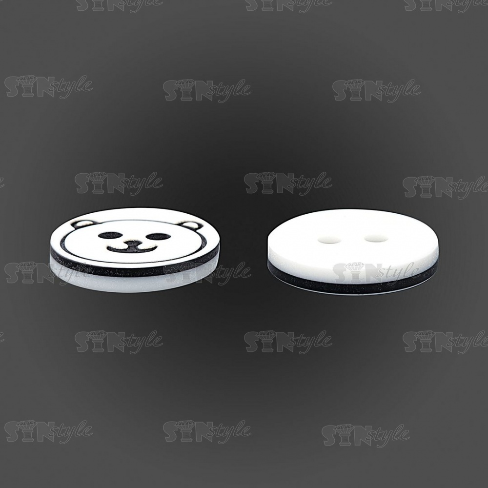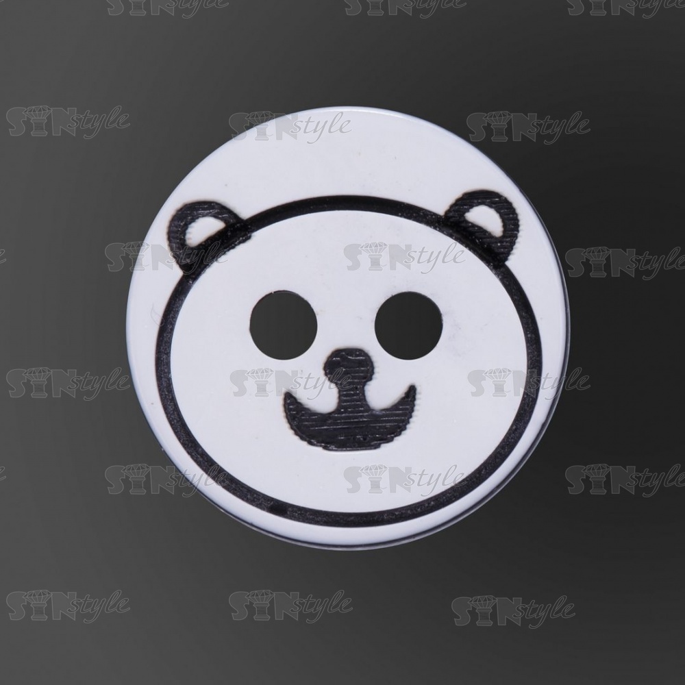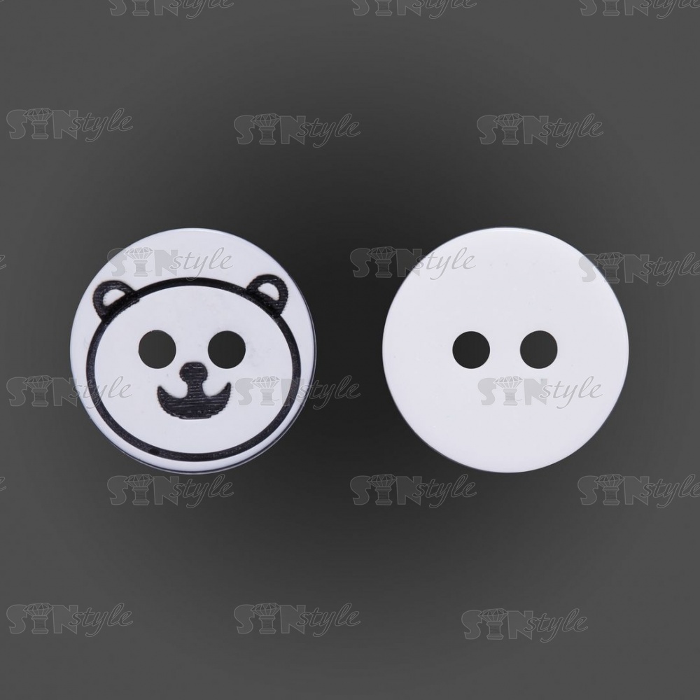 Пуговица пластиковая на два прокола "Медвежонок", белая с черным, 20L