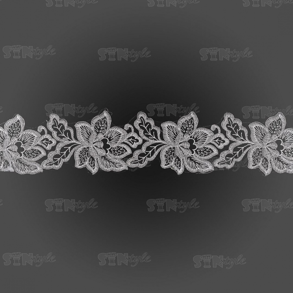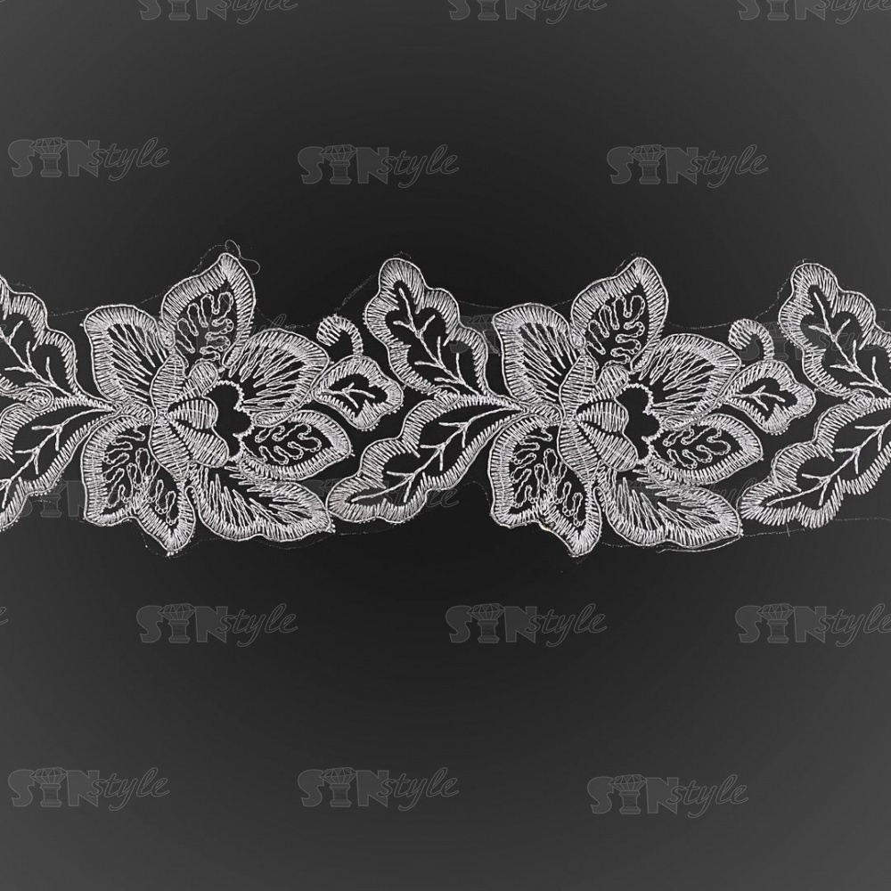 Кружево гипюр, ширина 80 мм, цвет белый с серебром, намотка 10 ярдов
