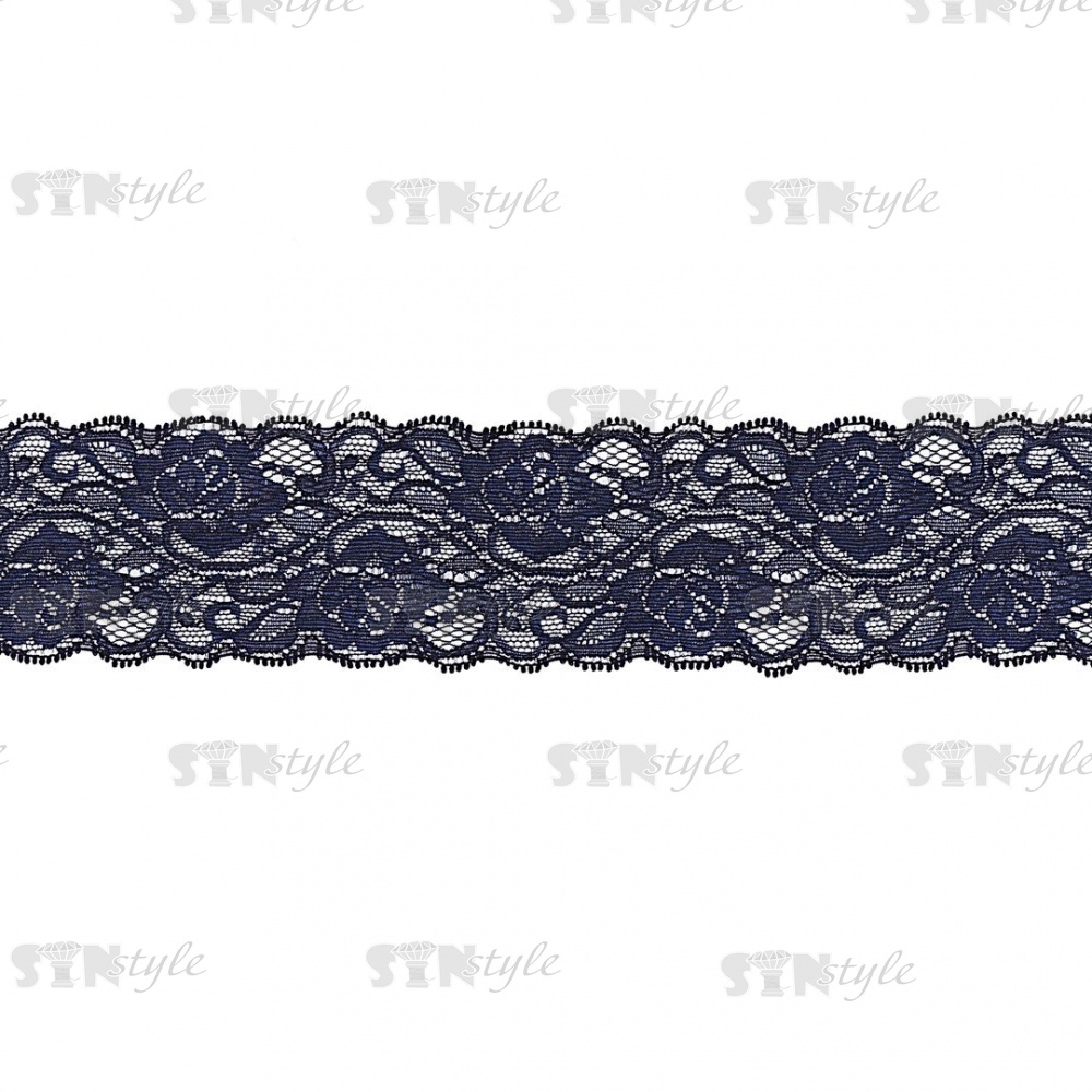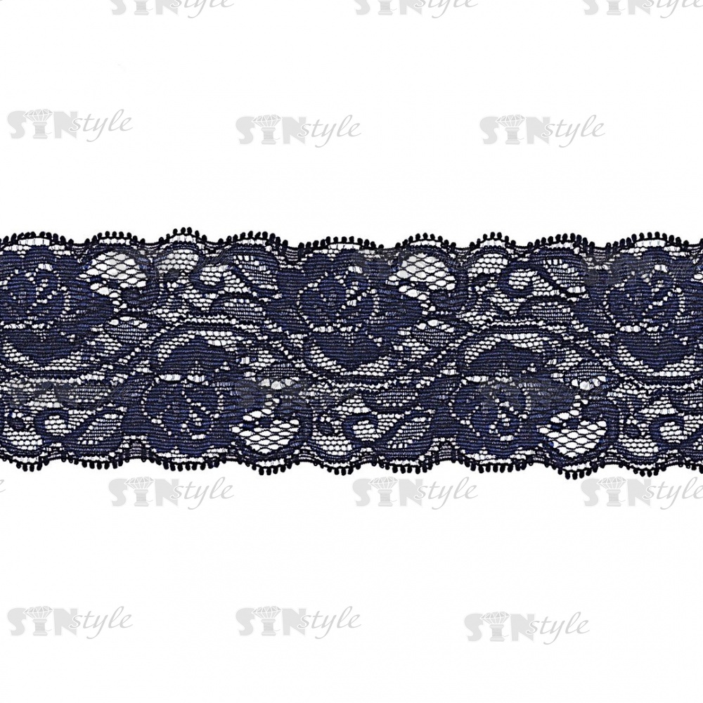 Кружево эластичное, ширина 60 мм, цвет темно-синий, намотка 15 ярдов