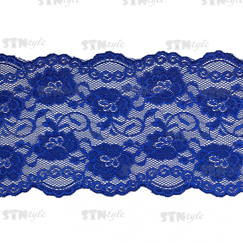 Кружево эластичное, ширина 150 мм, цвет синий, намотка 15 ярдов